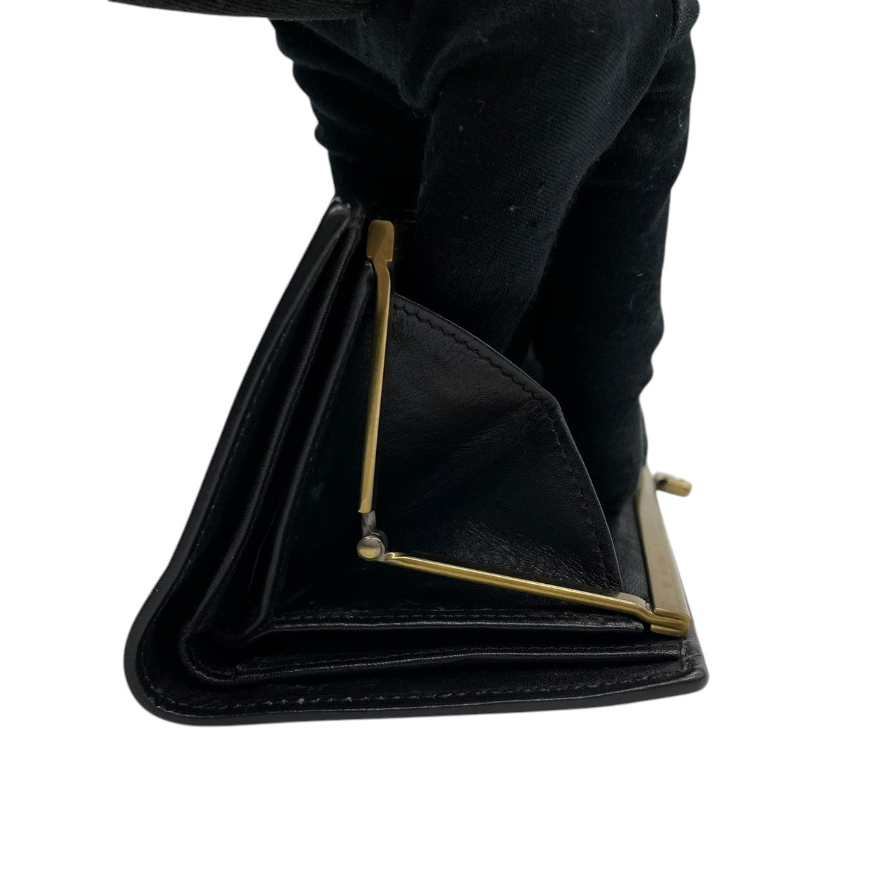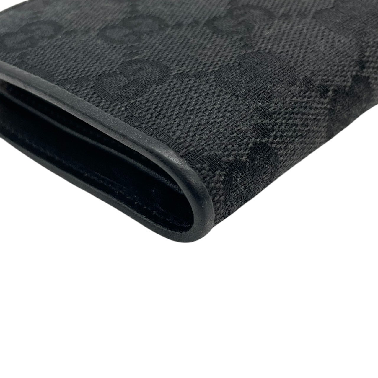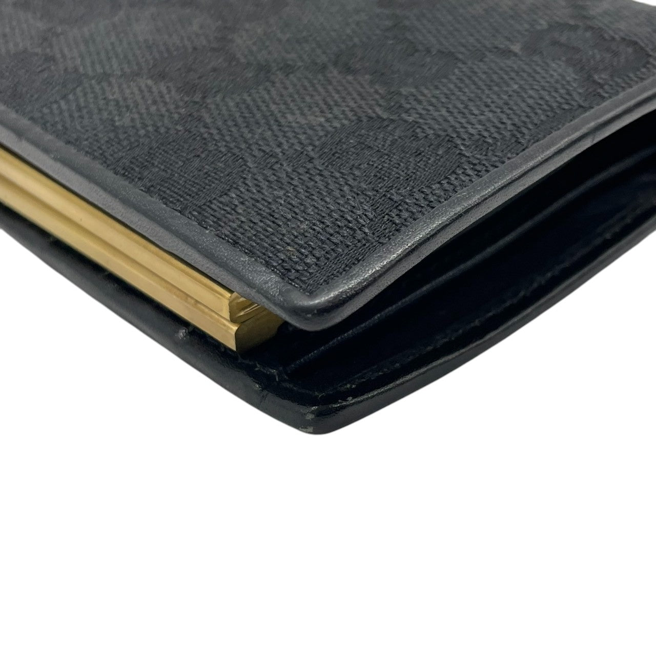 【美品】グッチ GUCCI 長財布 二つ折り がま口 ガマ口 GGキャンバス レザー 本革 ブラック 黒 ゴールド金具 Gロゴ ロング ウォレット レディース メンズ ユニセックス 男女兼用 スリム 薄型 ヴィンテージ レトロ クラシック オールドグッチ w5