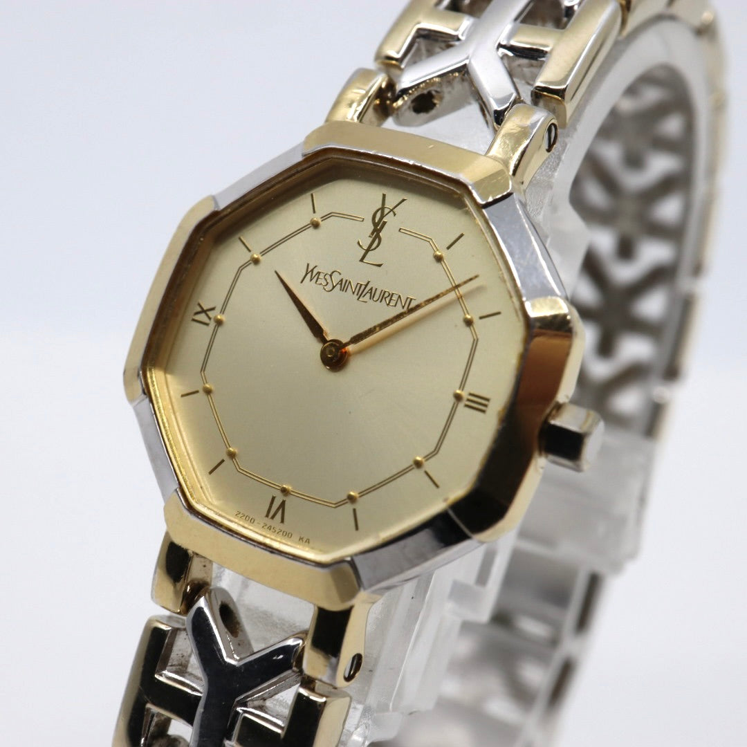 【電池交換済】美品 イヴサンローラン Yves Saint Laurent オクタゴン 2200-241762 レディース 腕時計 クォーツ コンビ ゴールド シルバー YSLロゴベルト 八角形 ビンテージ レトロ クラシック ドレスウォッチ 上品 G7