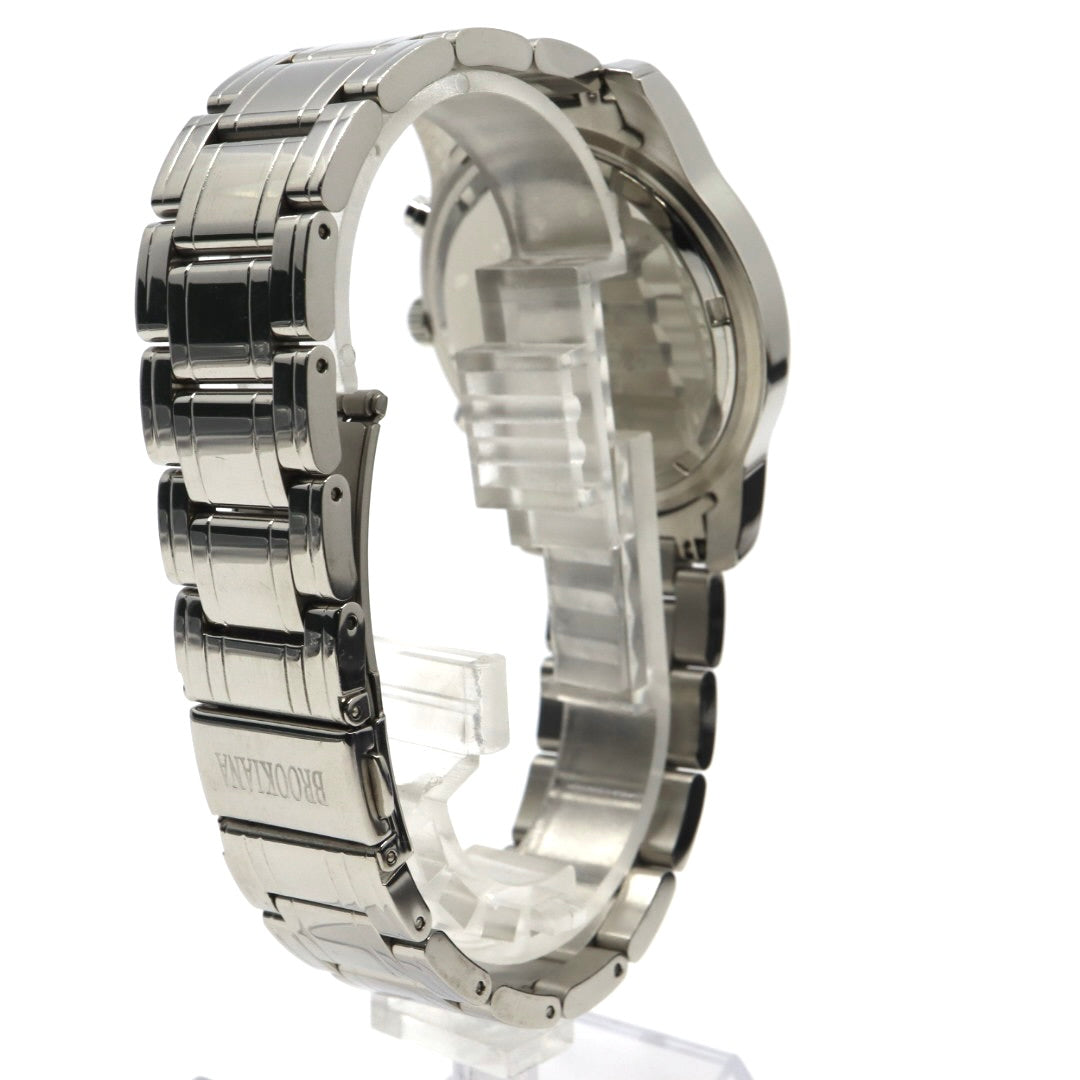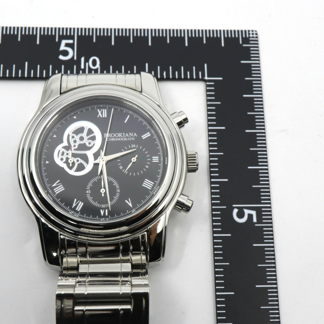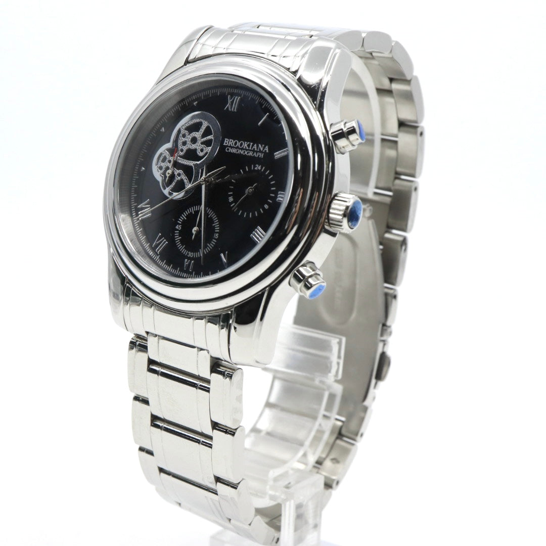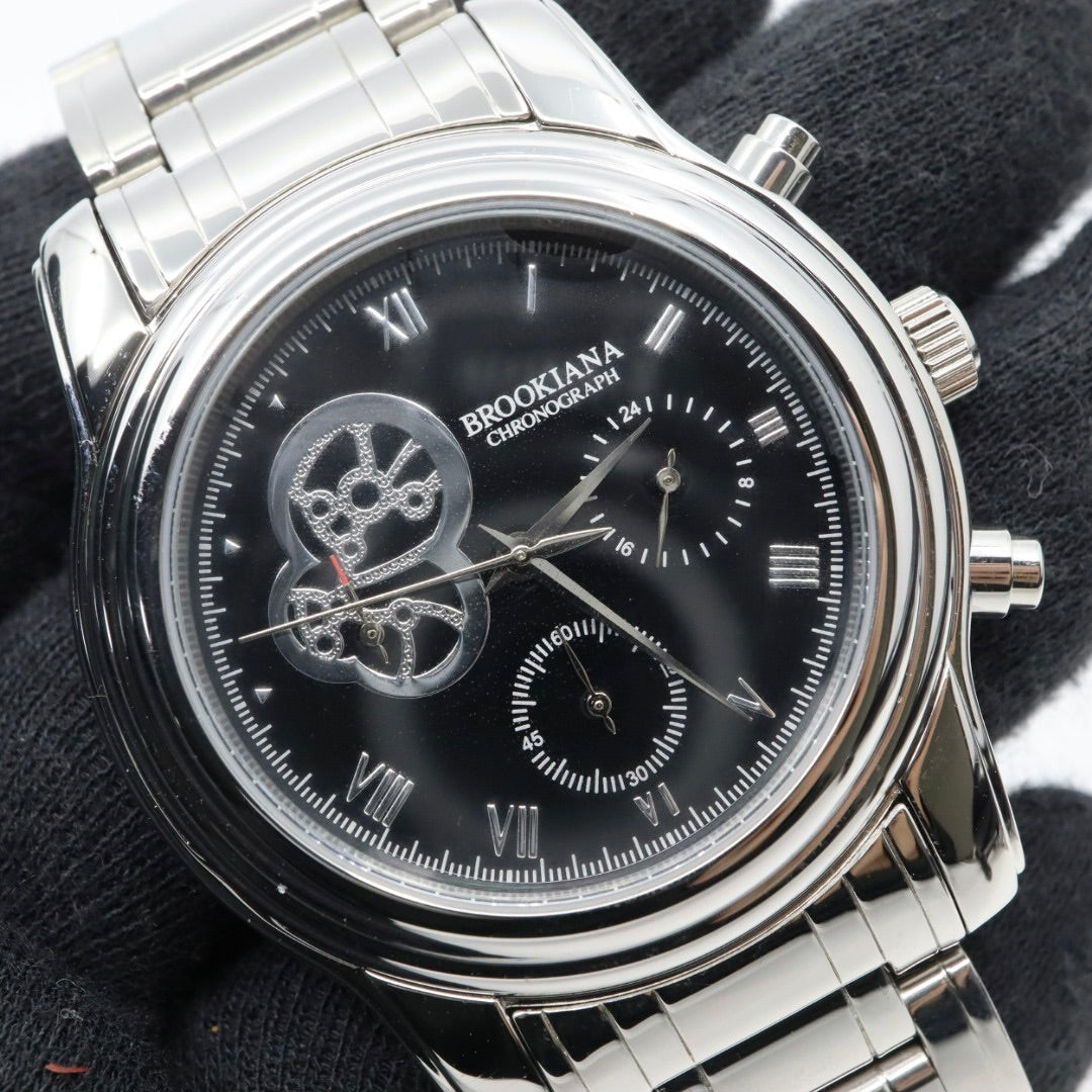 【新品電池交換済】美品 ブルッキアーナ BROOKIANA クロノグラフ BA1617 メンズ 腕時計 クォーツ アナログ デイト シルバー ブラック 黒文字盤 青石リューズ カボション ビッグフェイス ステンレス 3針 男性用 ビジネス カジュアル 箱付 G