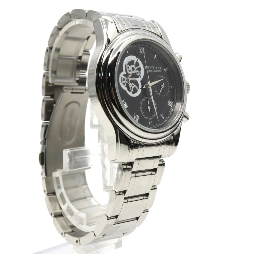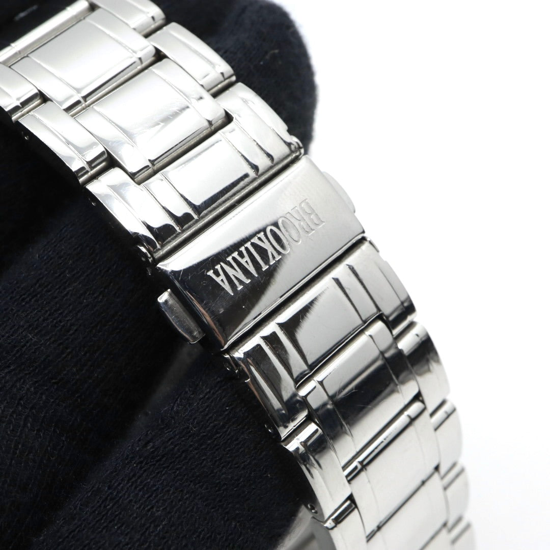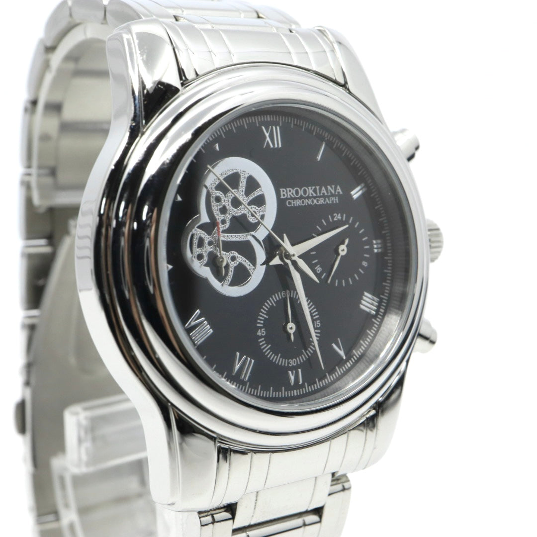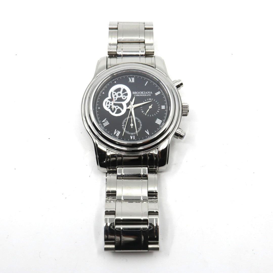 【新品電池交換済】美品 ブルッキアーナ BROOKIANA クロノグラフ BA1617 メンズ 腕時計 クォーツ アナログ デイト シルバー ブラック 黒文字盤 青石リューズ カボション ビッグフェイス ステンレス 3針 男性用 ビジネス カジュアル 箱付 G