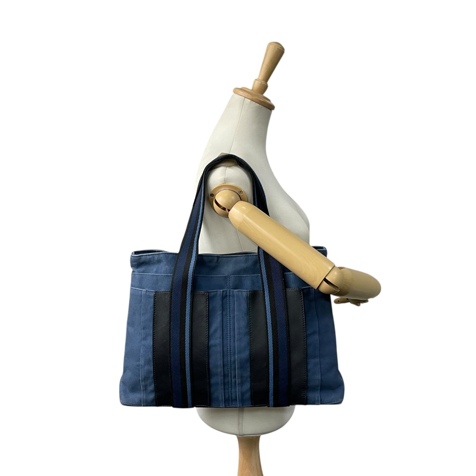 エルメス HERMES トロカホリゾンタル MM トートバッグ ハンドバッグ キャンバス レザー 本革 ネイビー ブルー 青 ブラック 黒 ストライプ メンズ レディース ユニセックス A4収納可 通勤 通学 ビジネス 軽量 鞄 カバン k3