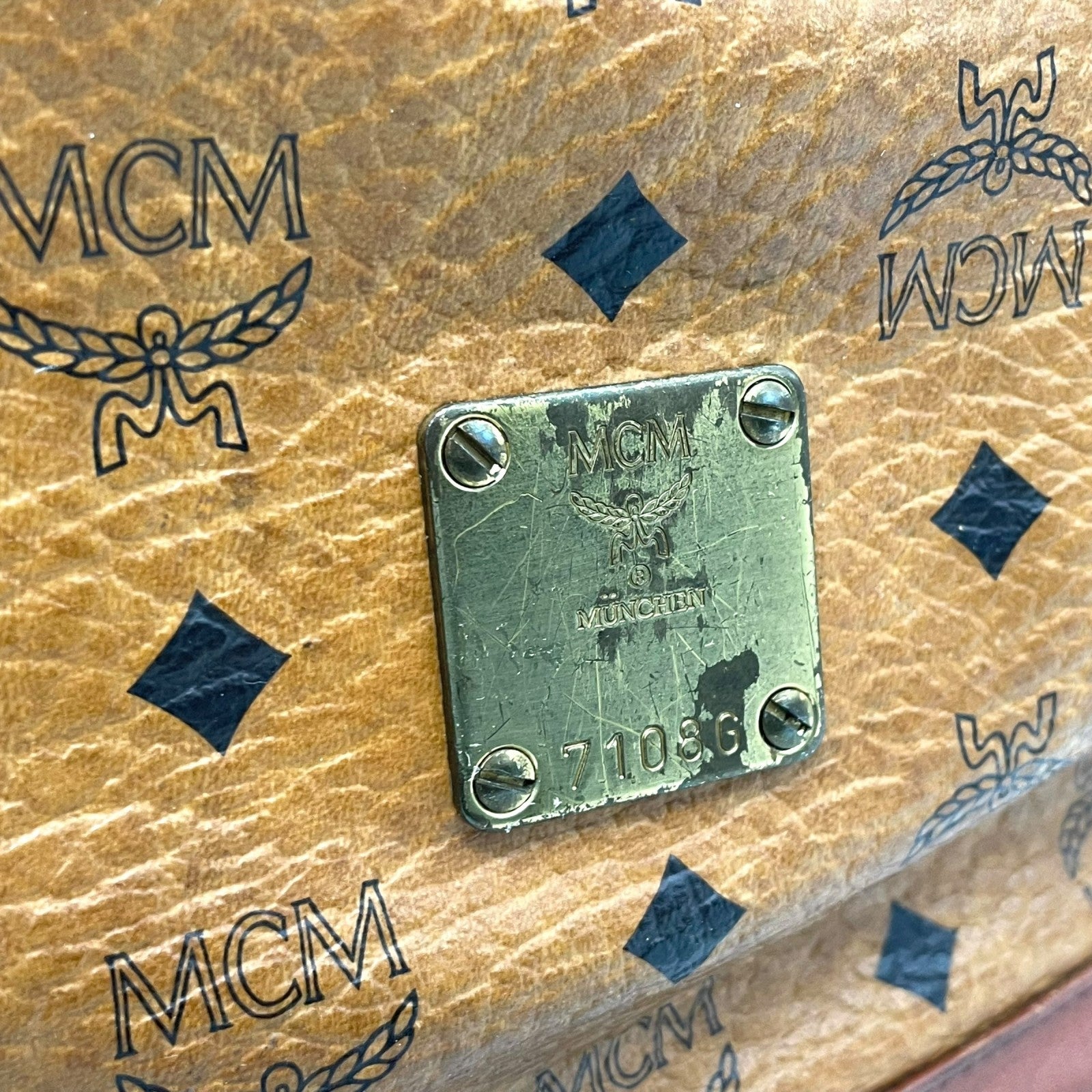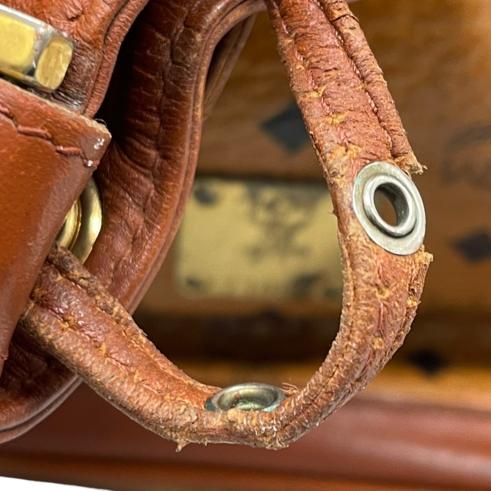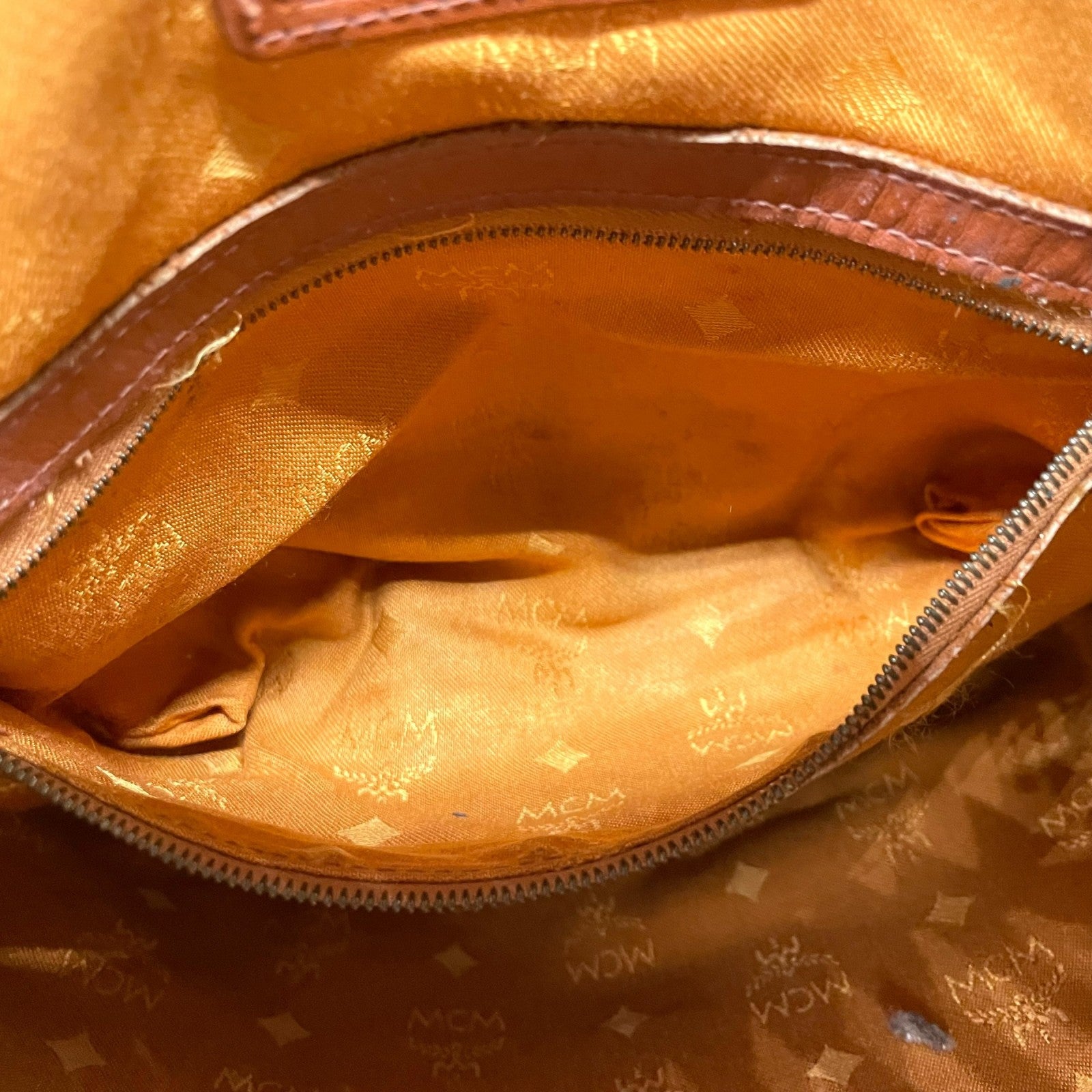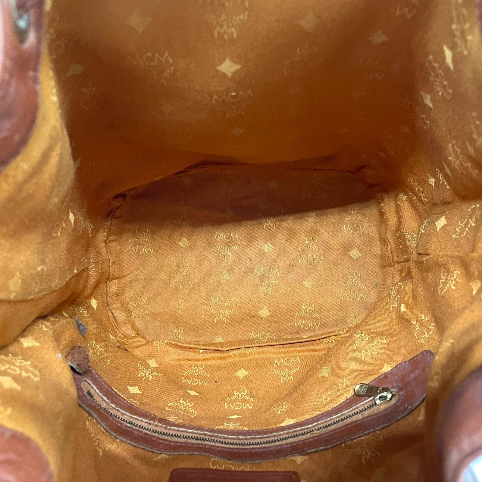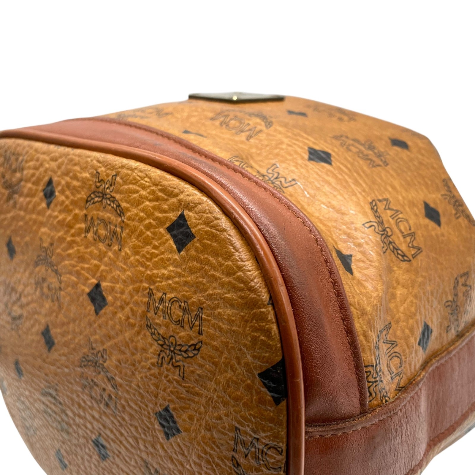 MCM ヴィンテージ ヴィセトス 巾着 ショルダーバッグ ドローストリング バケットバッグ ブラウン レザー切替 ゴールド金具 レディース D6