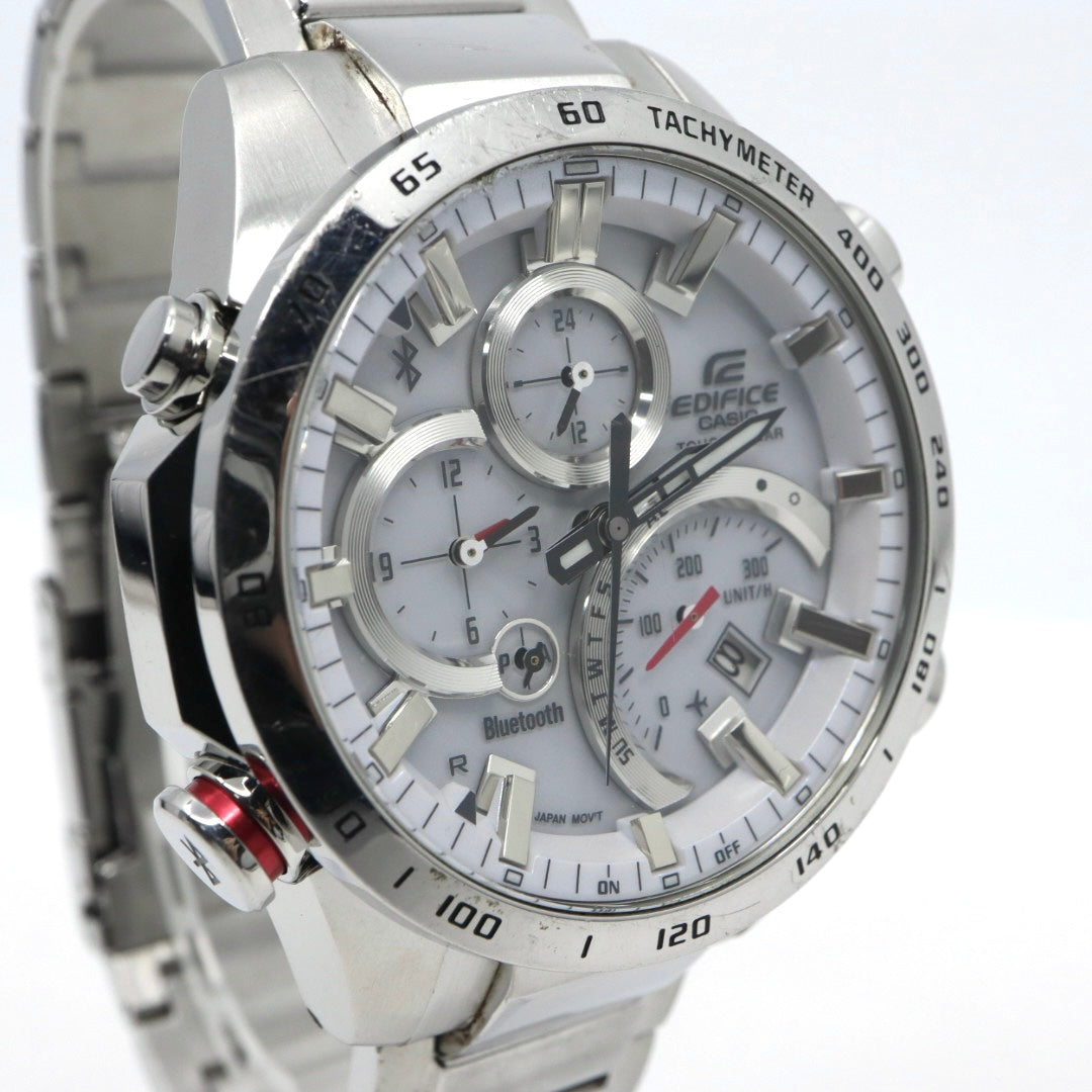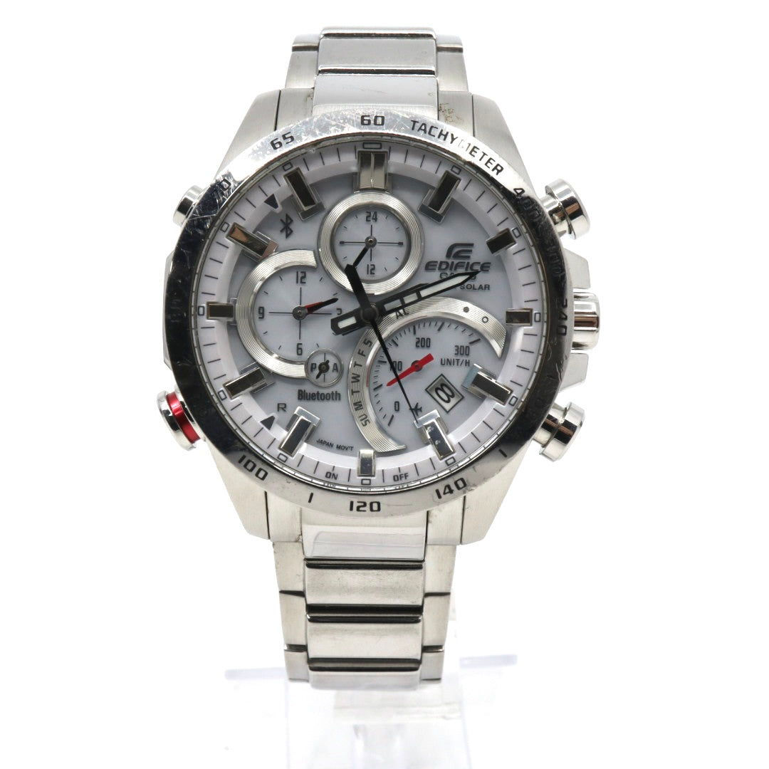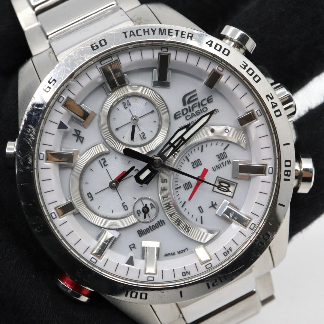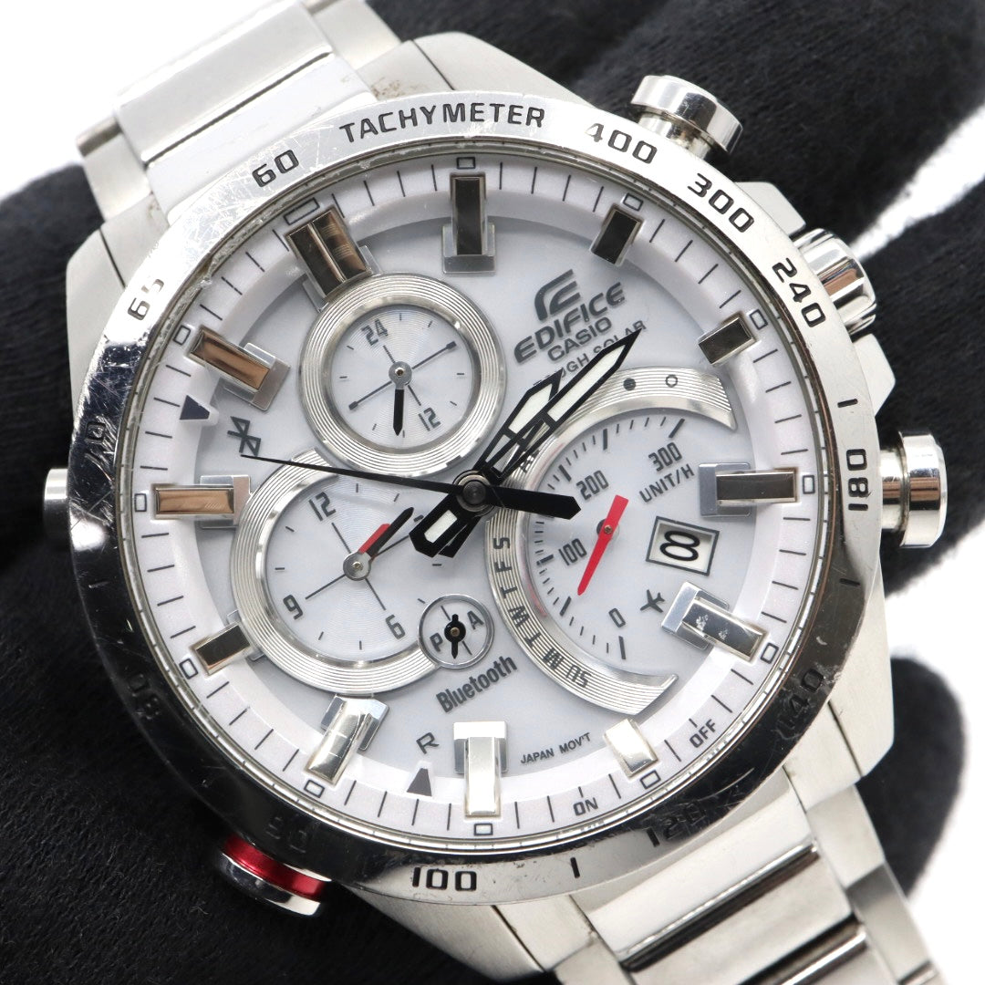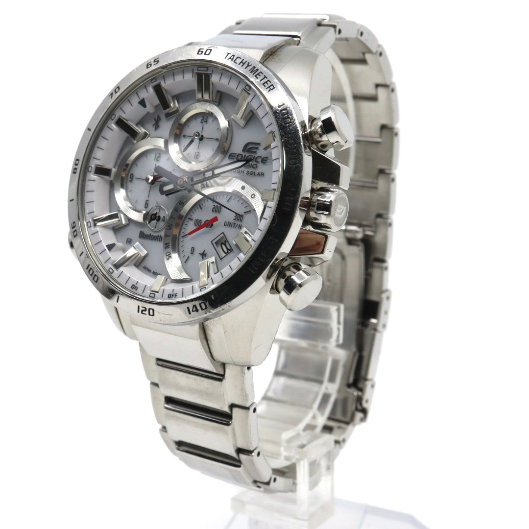 【稼働品】カシオ CASIO エディフィス EDIFICE EQB-501 タフソーラー Bluetooth搭載 モバイルリンク クロノグラフ ホワイト文字盤 シルバー ステンレス メンズ 腕時計 アナログ デュアルタイム 多機能 スポーティ ビジネス G7