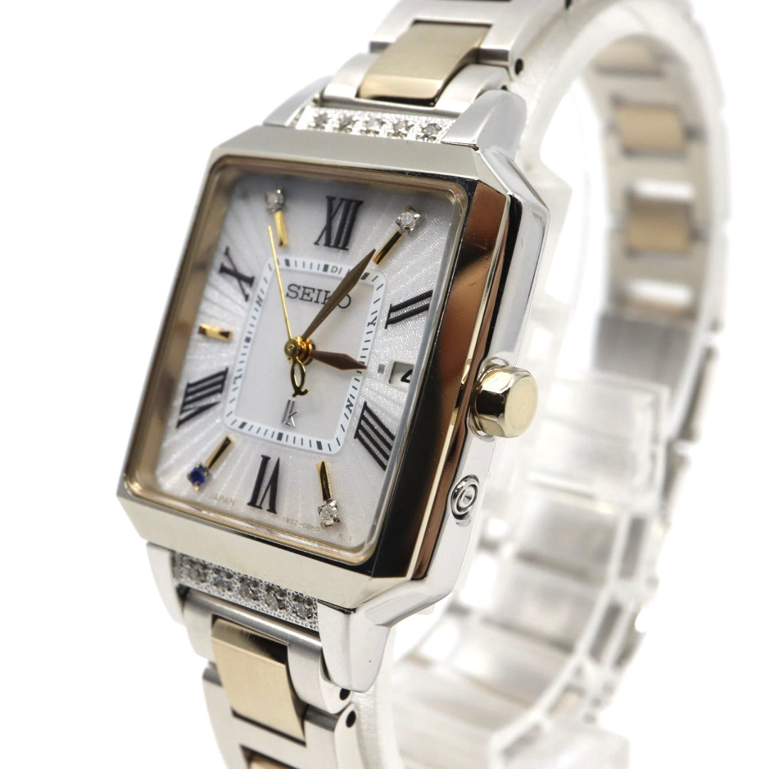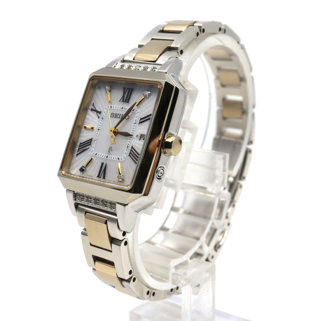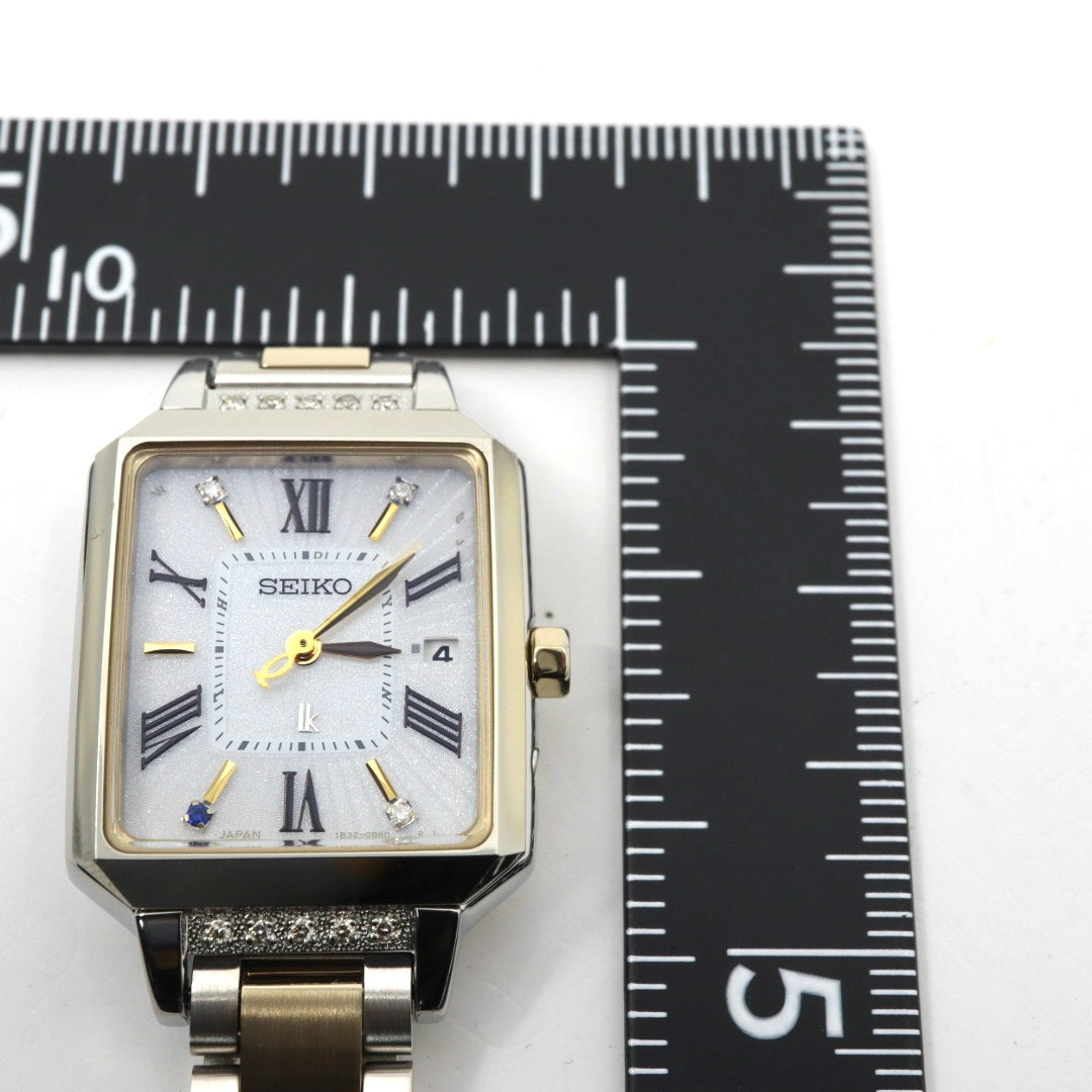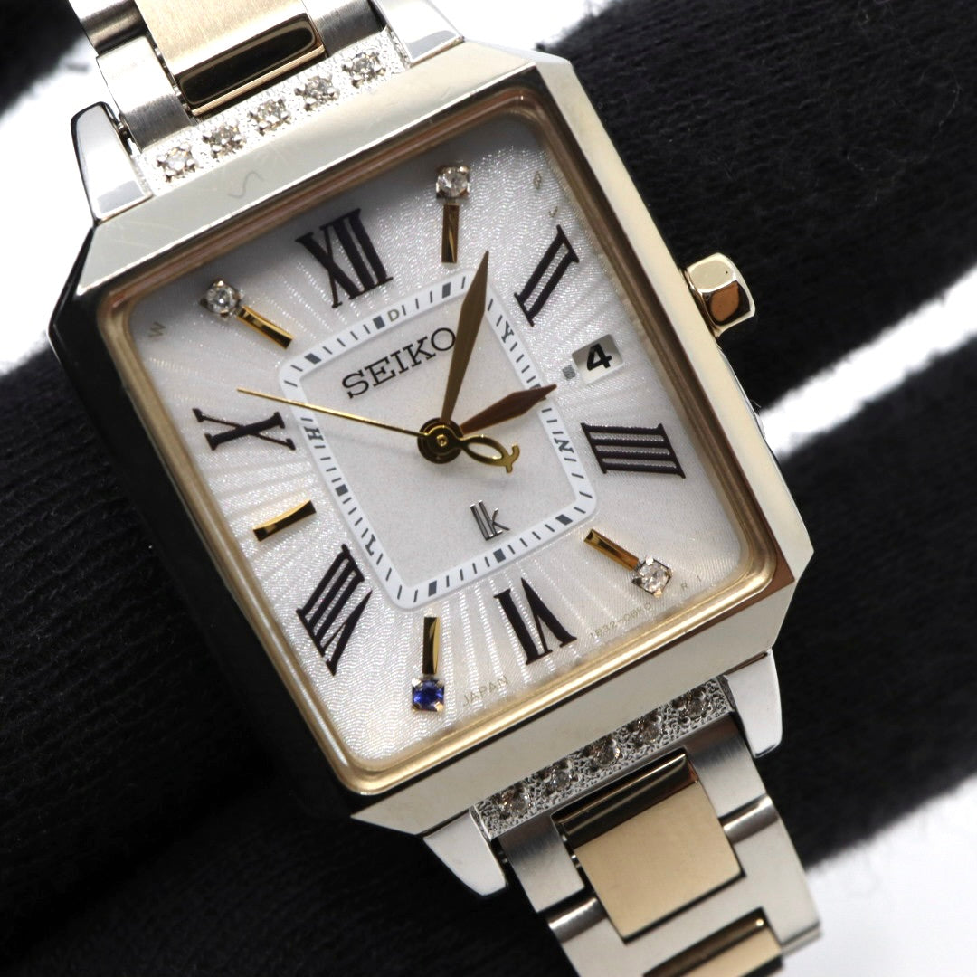 【未使用級/稼働品】セイコー ルキア LUKIAYASE プロデュース 限定モデル SSVW105 1B32-0AP0 ソーラー電波 ダイヤモンド サファイア 白蝶貝 スクエア レディース 腕時計 コンビ 希少 レア クリーニング済 G8