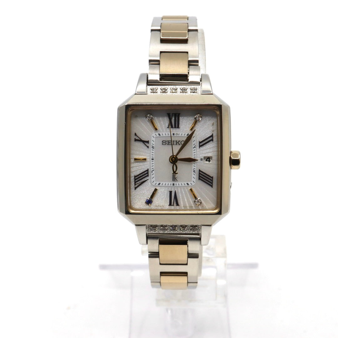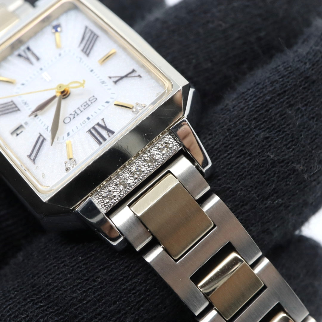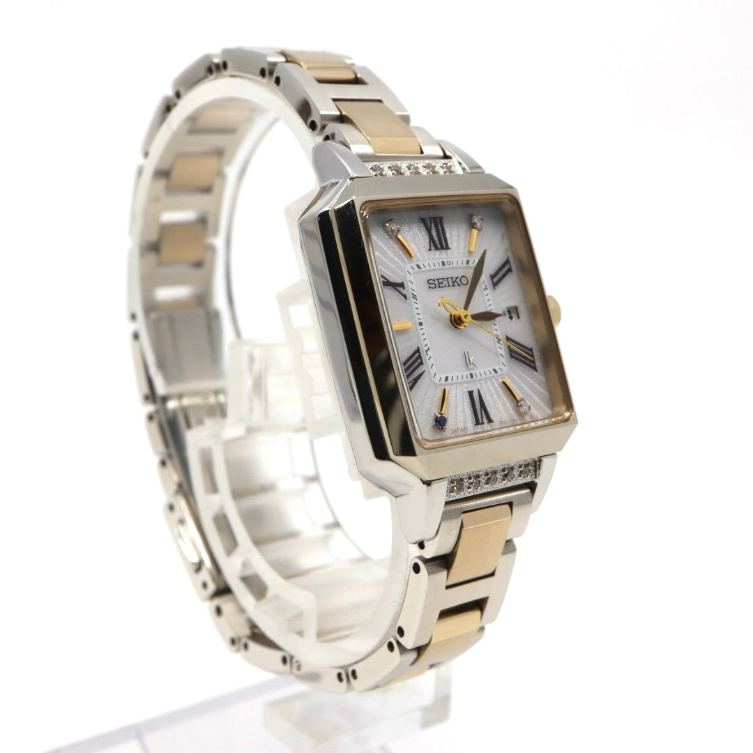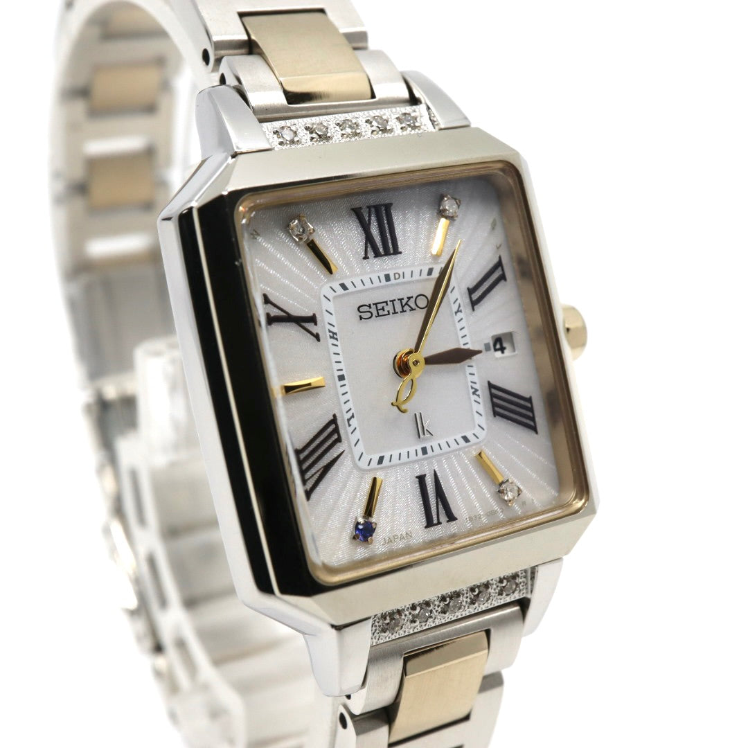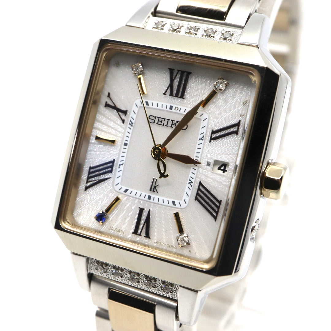 【未使用級/稼働品】セイコー ルキア LUKIAYASE プロデュース 限定モデル SSVW105 1B32-0AP0 ソーラー電波 ダイヤモンド サファイア 白蝶貝 スクエア レディース 腕時計 コンビ 希少 レア クリーニング済 G8