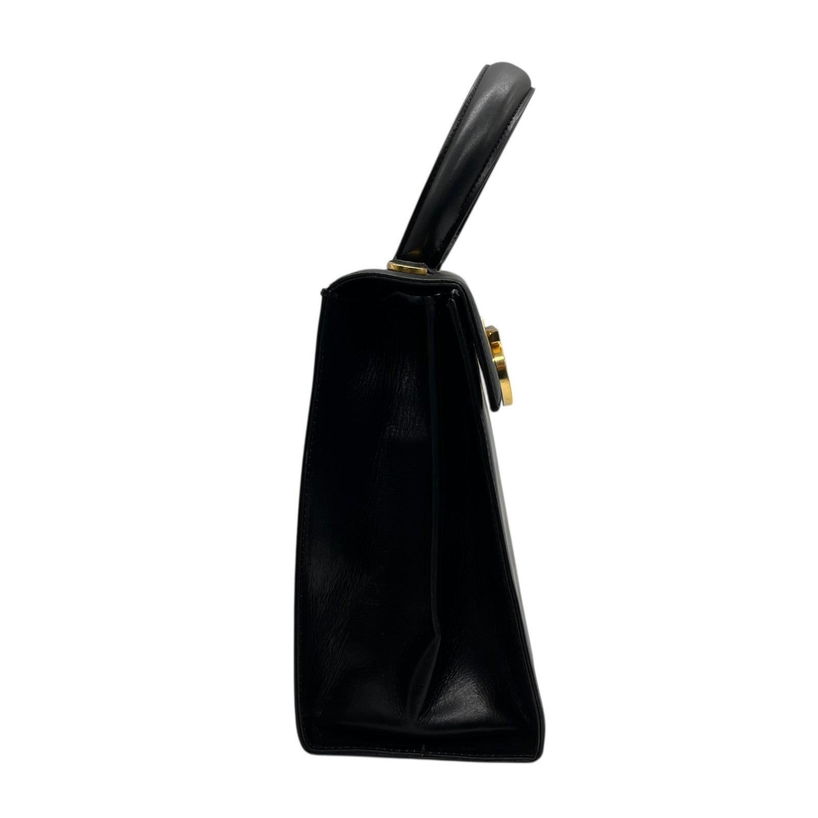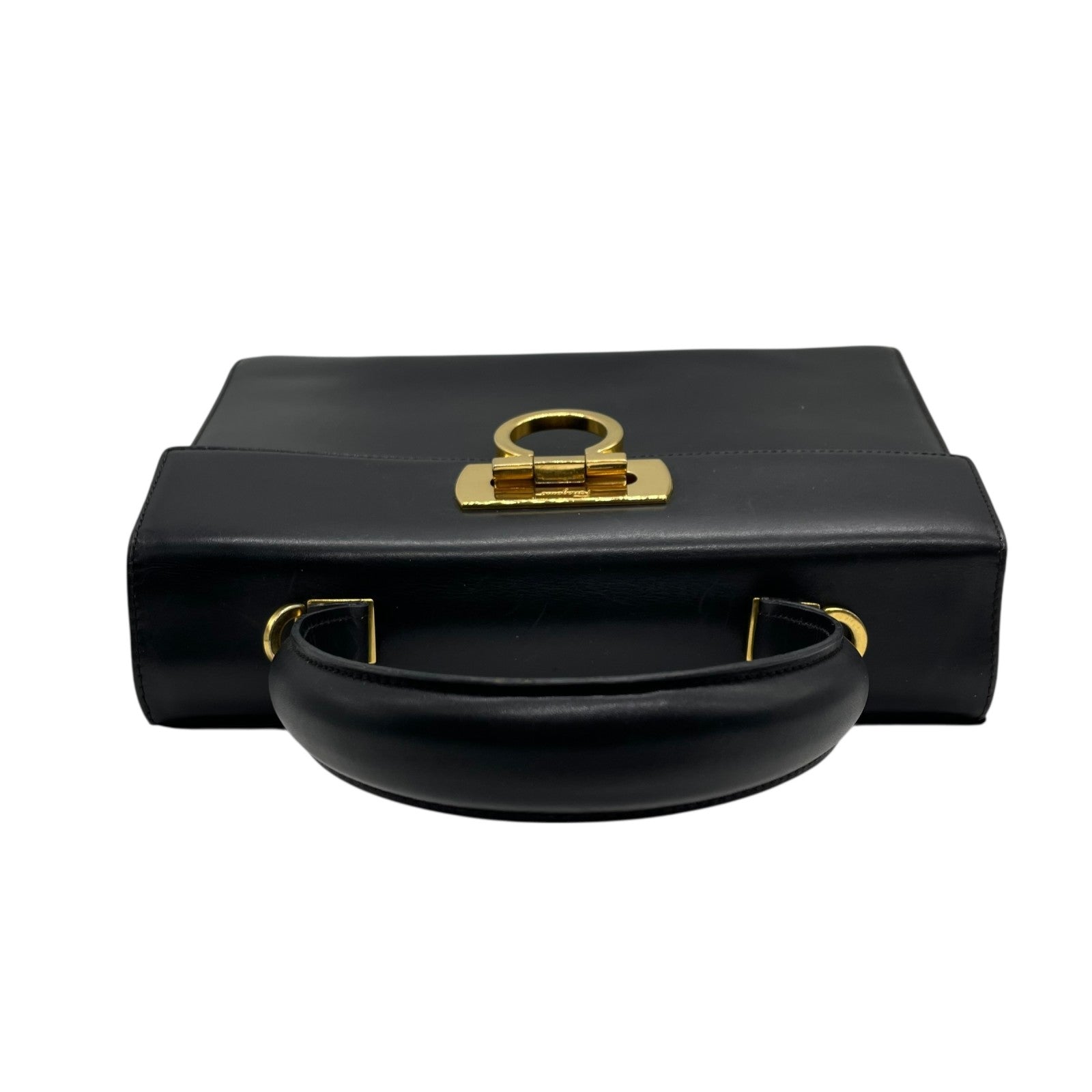 Salvatore Ferragamo フェラガモ ガンチーニ ハンドバッグ カーフレザー ブラック ゴールド金具 ヴィンテージ フォーマル A