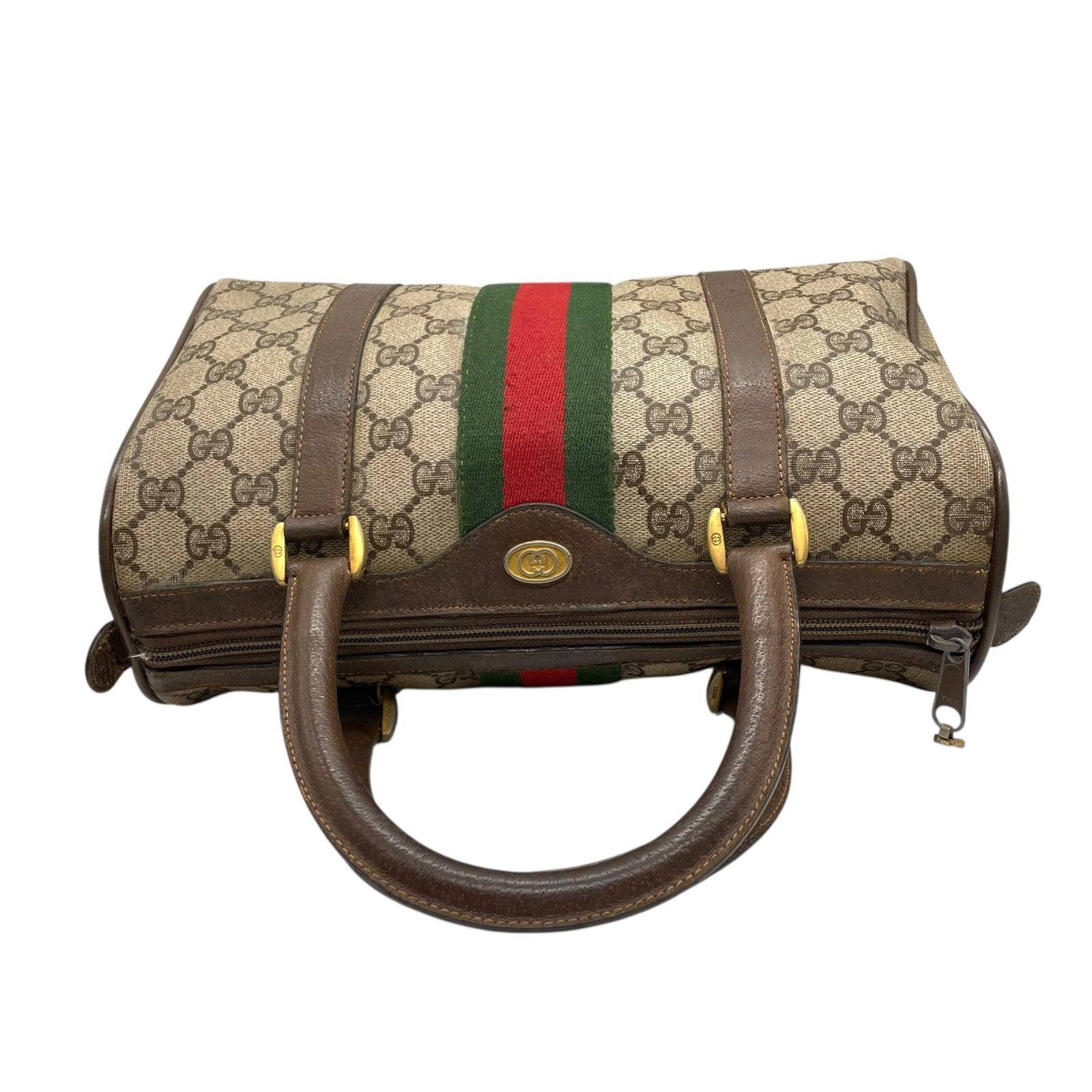 GUCCI グッチ ヴィンテージ GGスプリーム ミニボストン ハンドバッグ インターロッキングG ボストンバッグ GG柄 シェリーライン ベージュ ブラウン PVC レザー オールドグッチ F