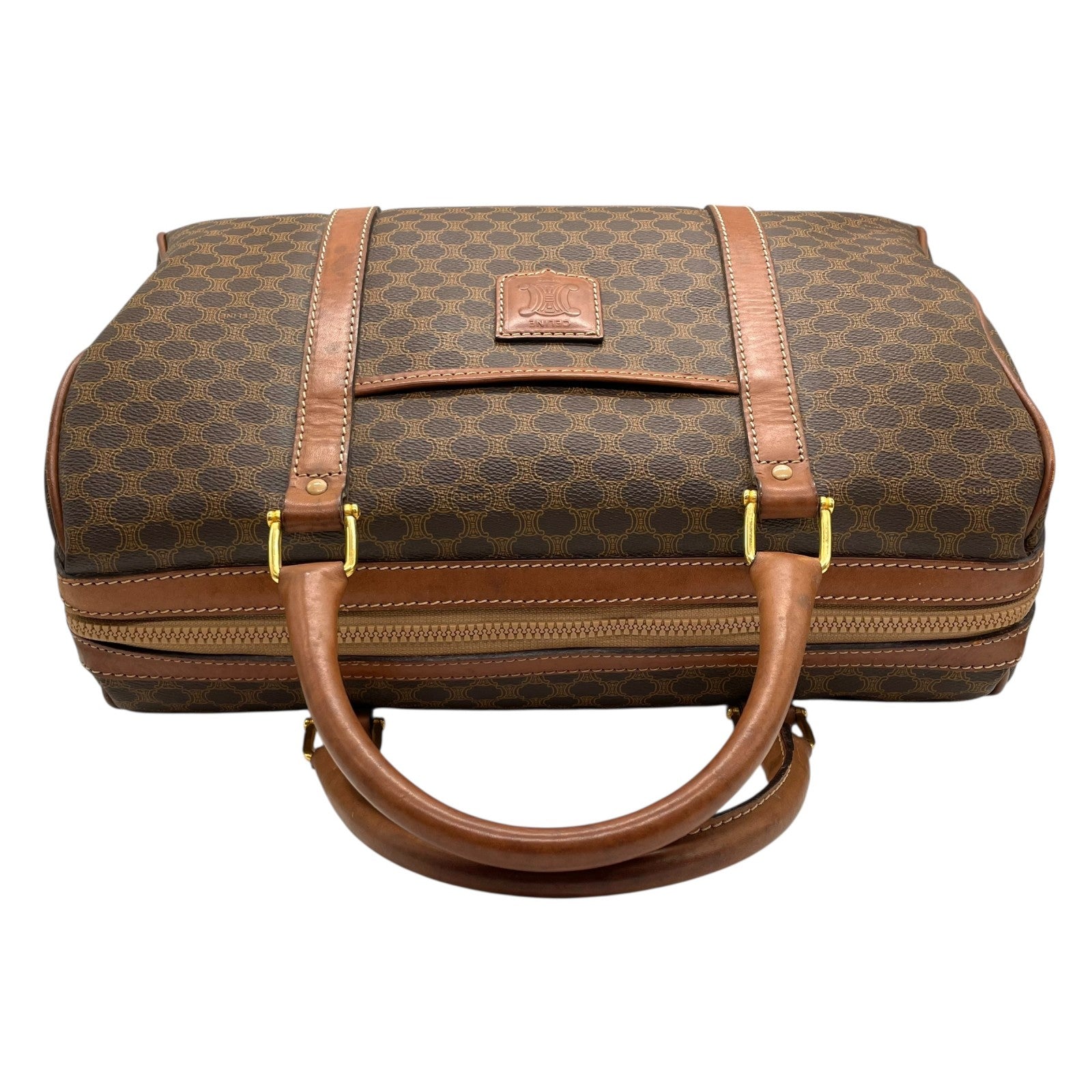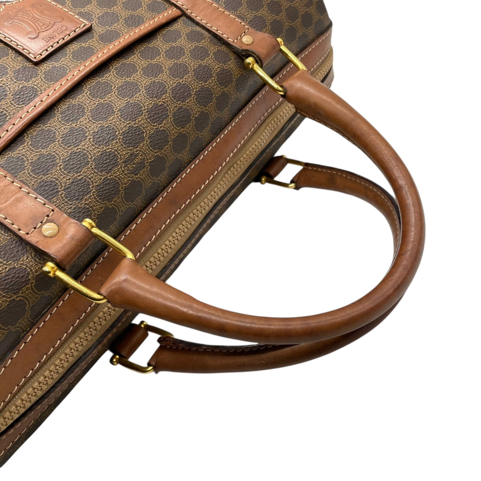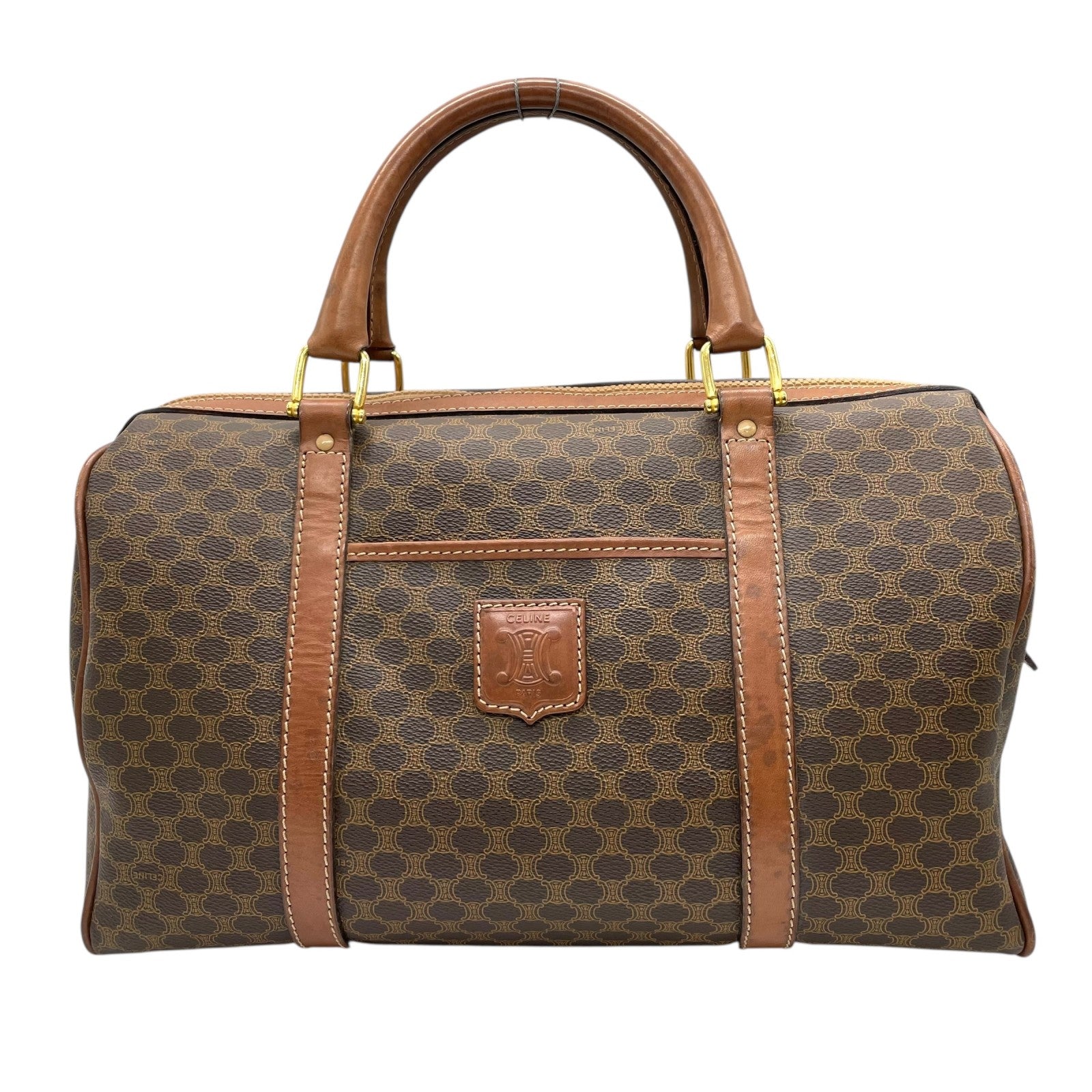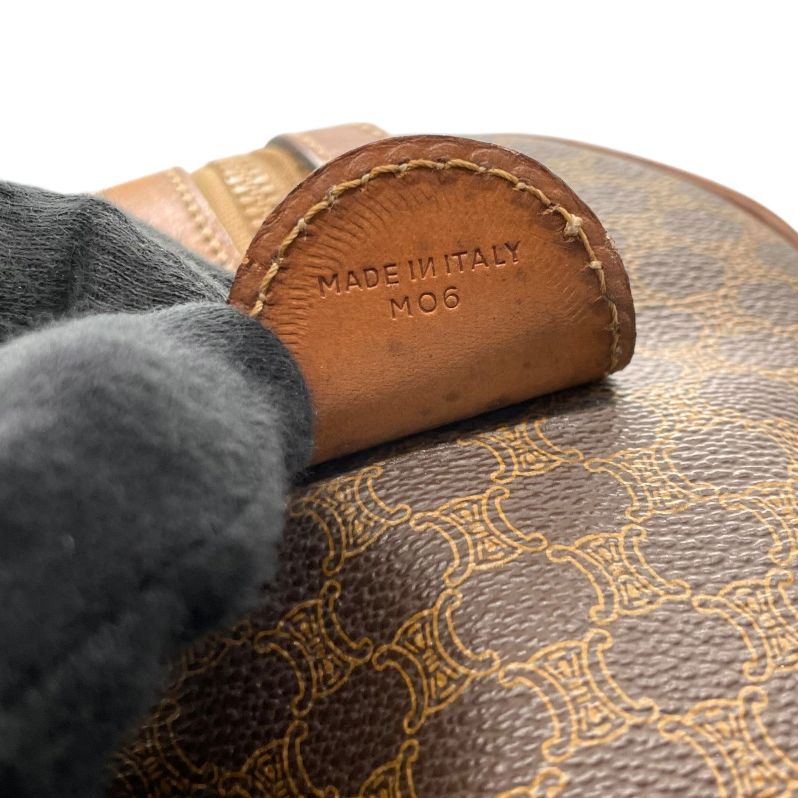 CELINE ヴィンテージ マカダム ミニボストンバッグ M06 オールドセリーヌ トリオンフ PVC レザー ブラウン ゴールド金具 レディース B