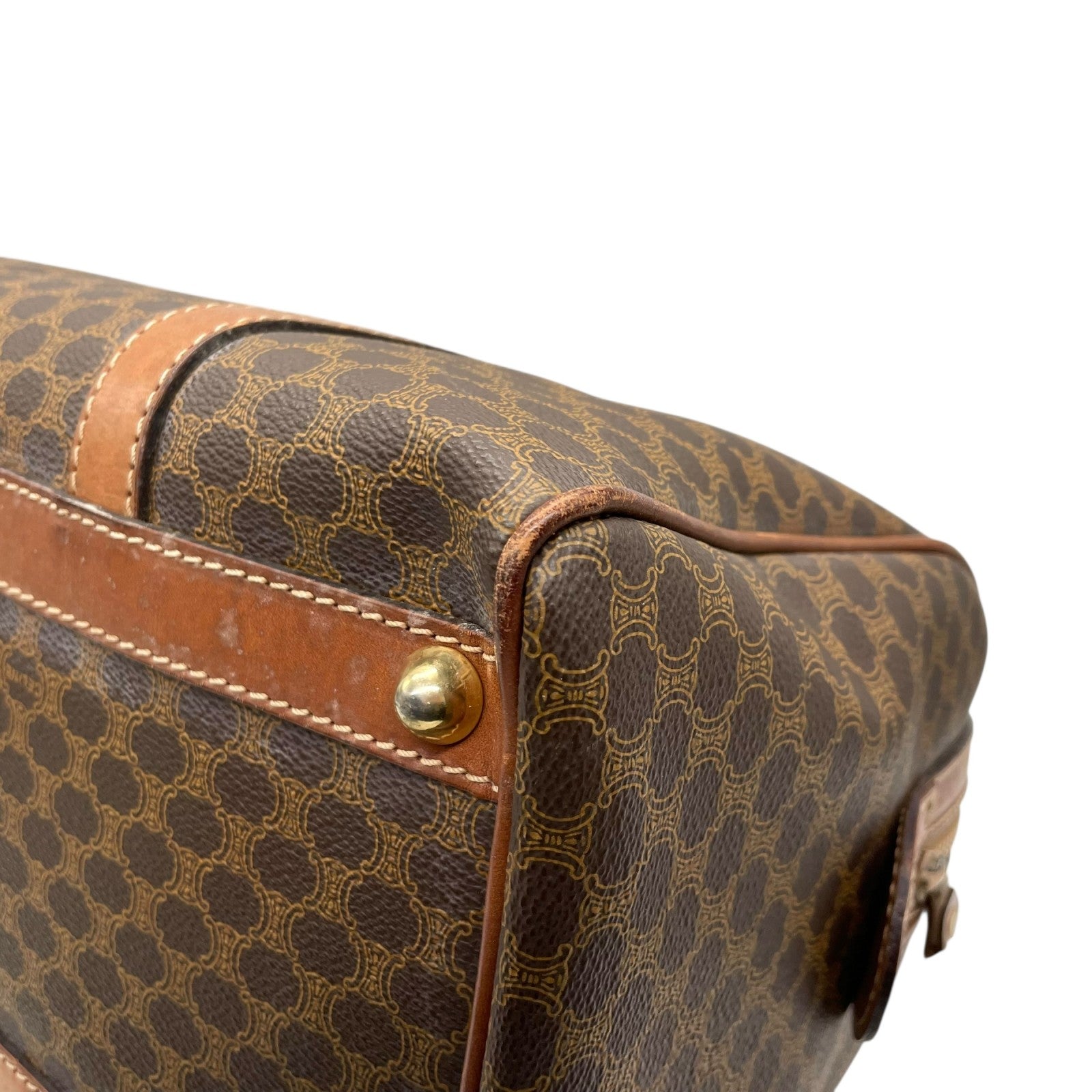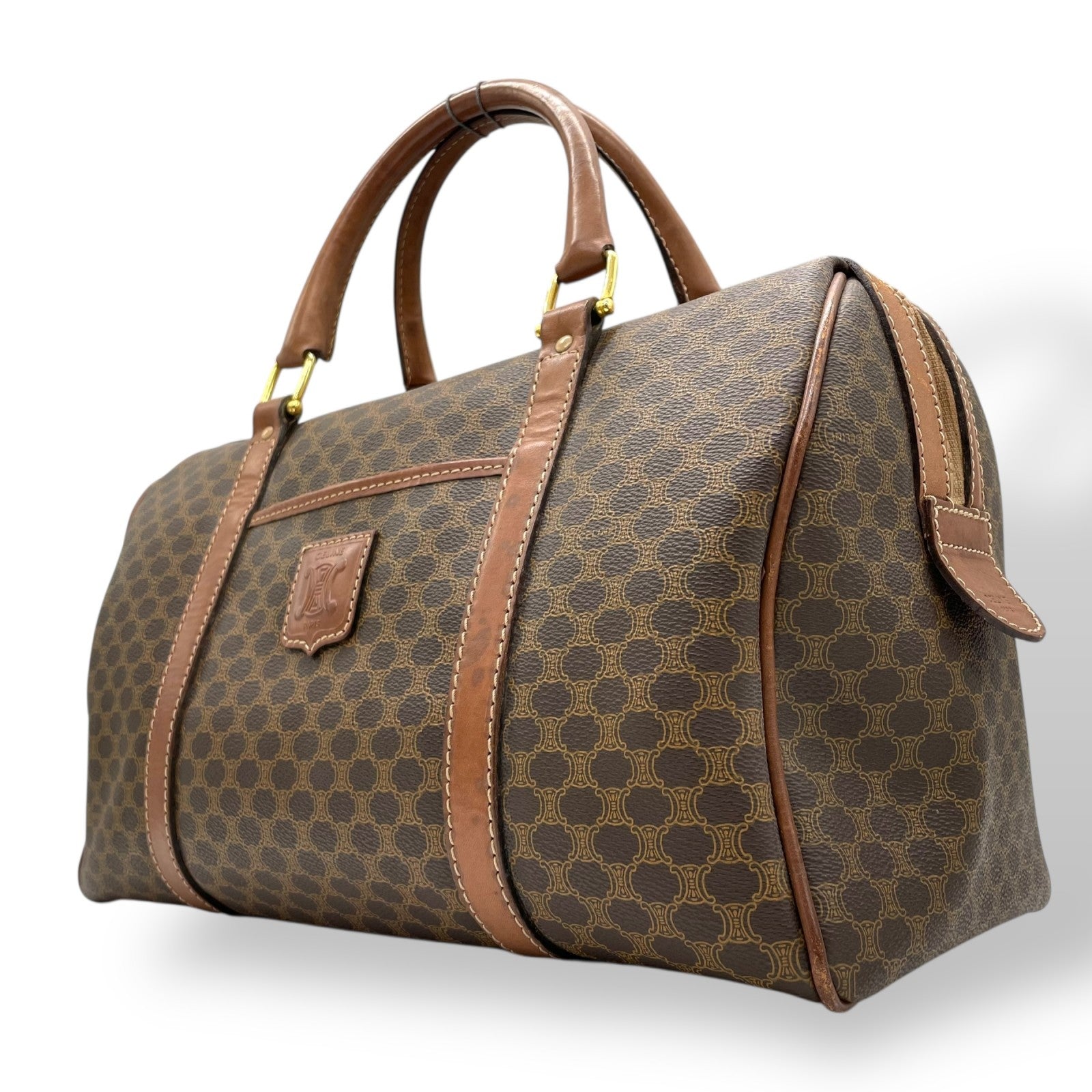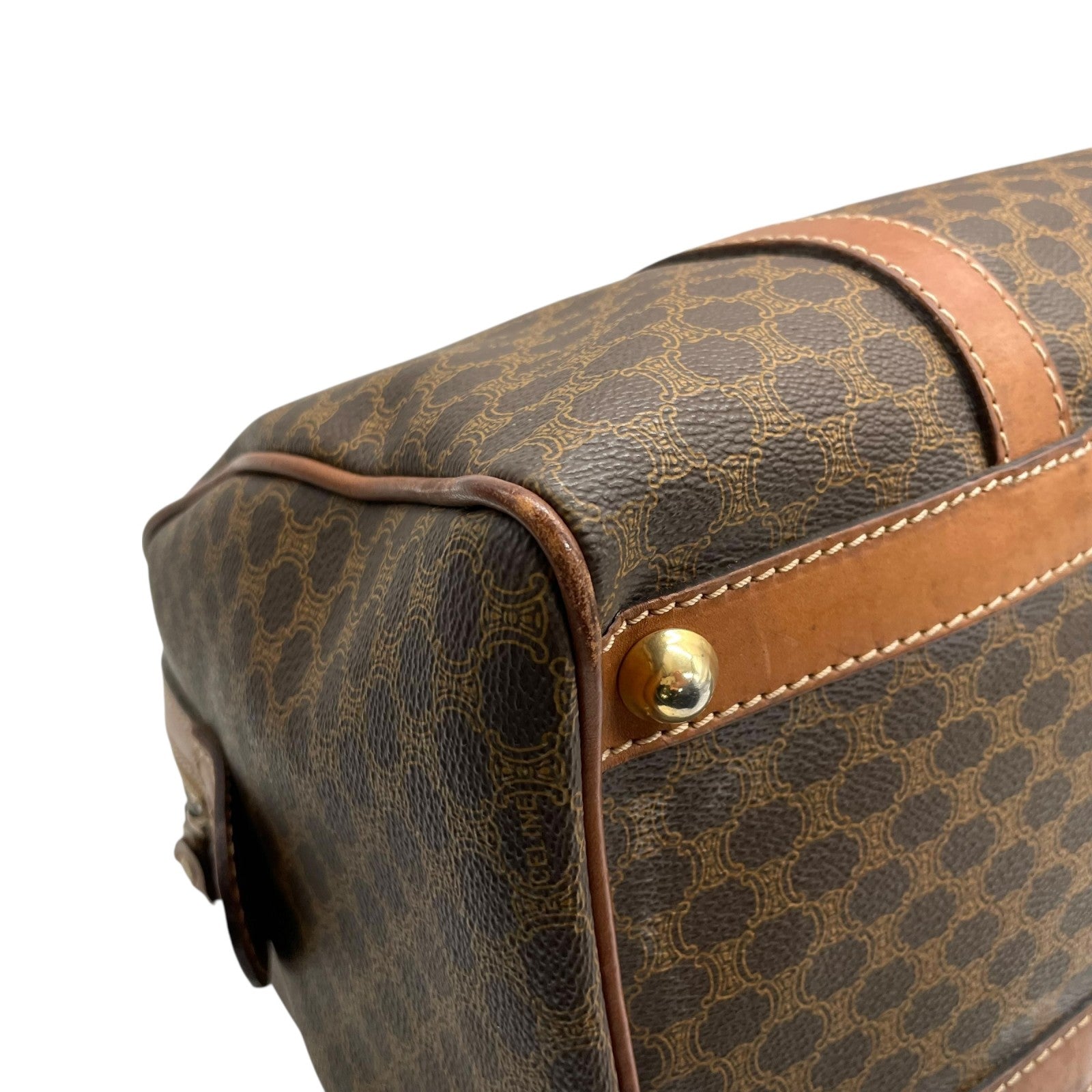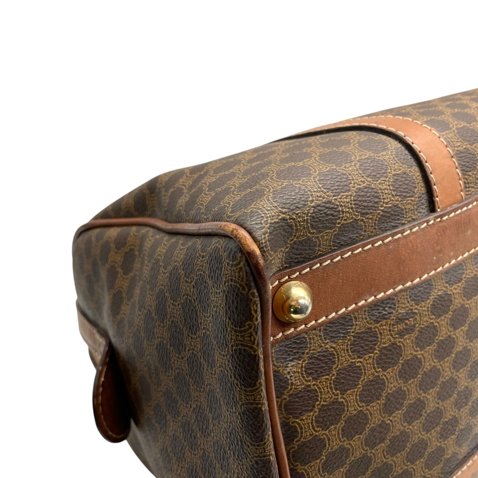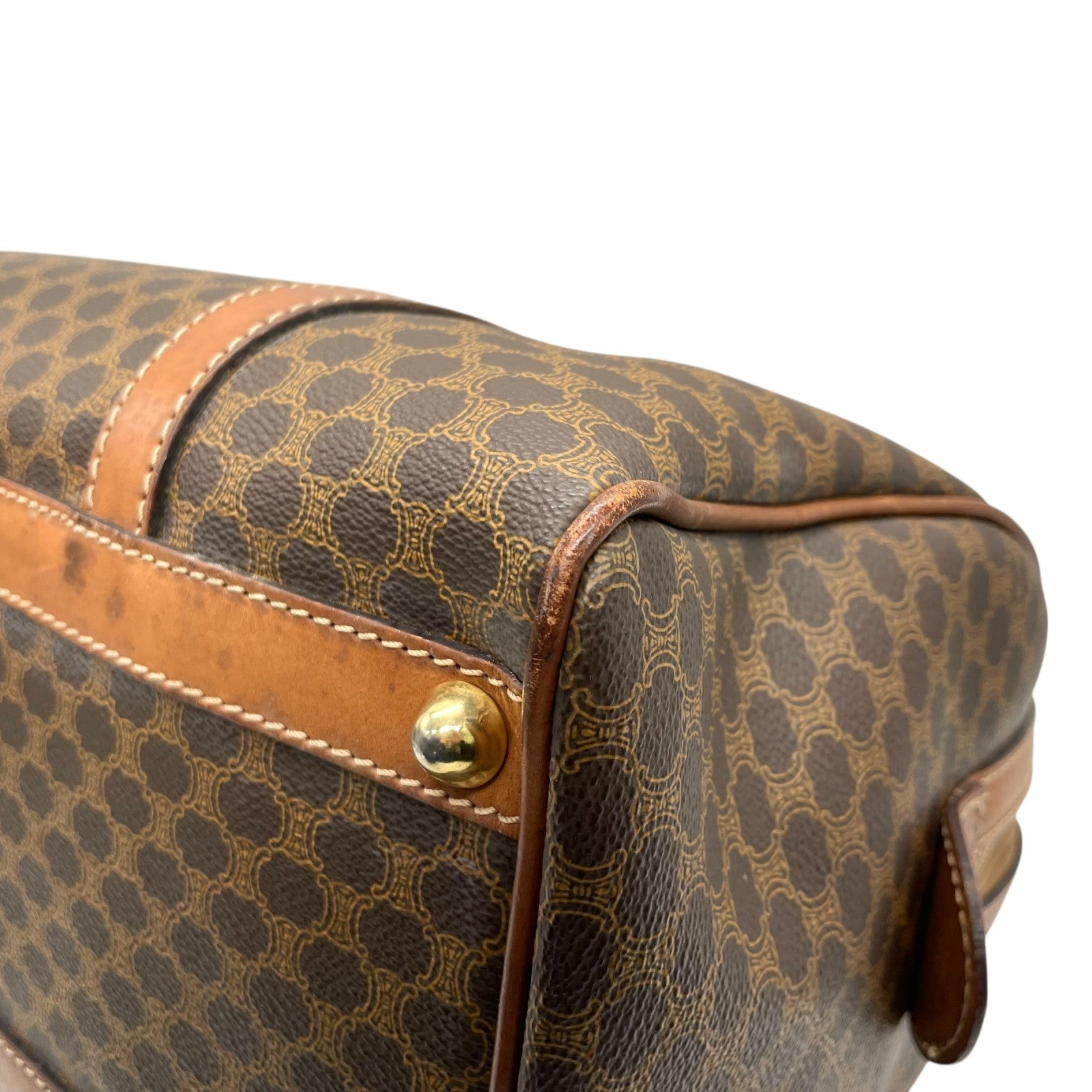 CELINE ヴィンテージ マカダム ミニボストンバッグ M06 オールドセリーヌ トリオンフ PVC レザー ブラウン ゴールド金具 レディース B