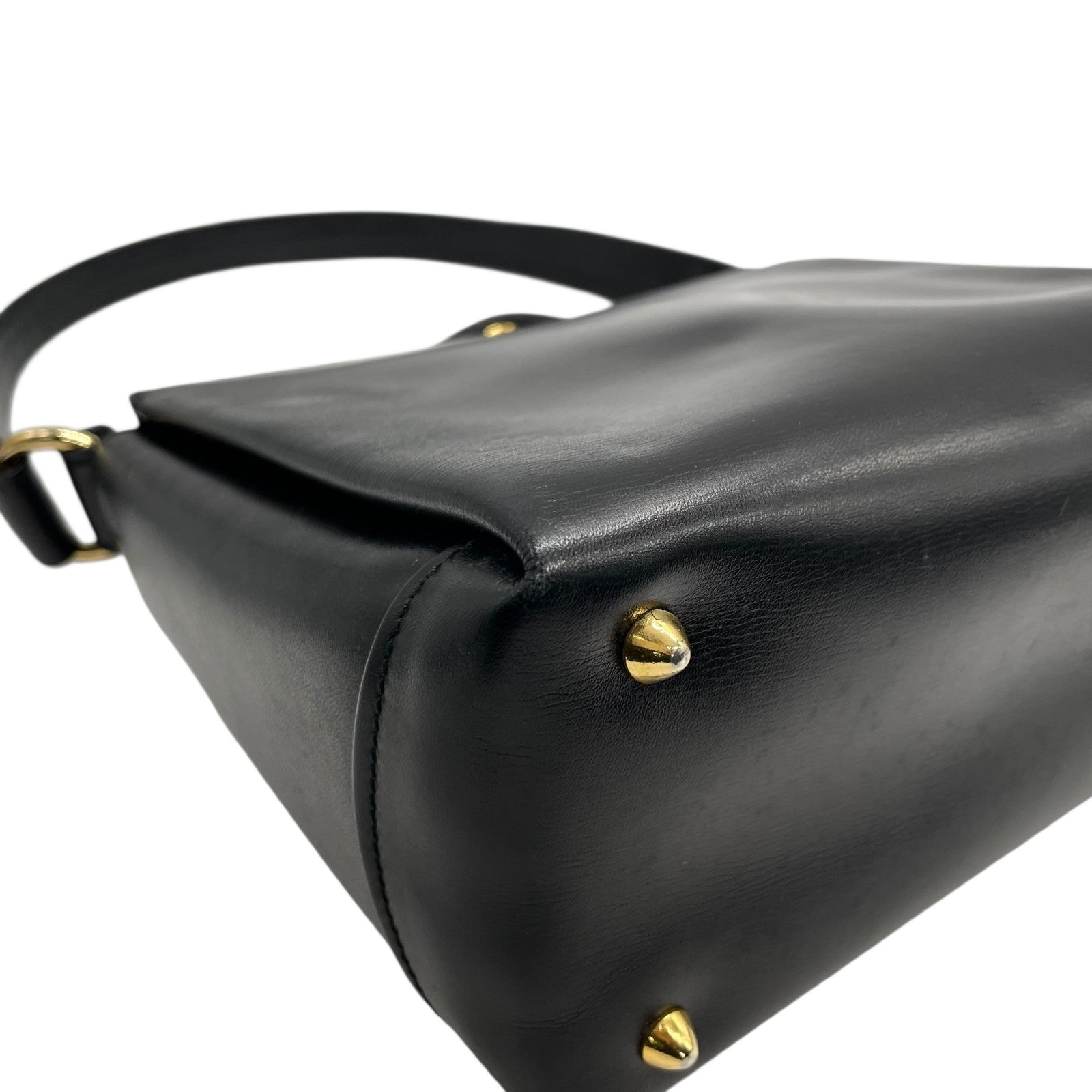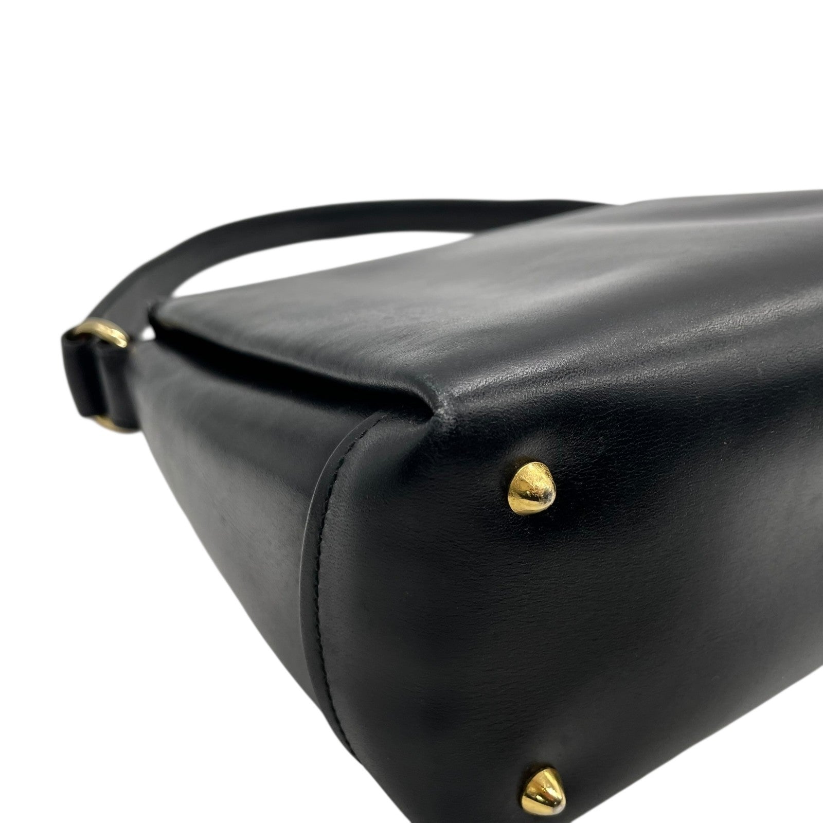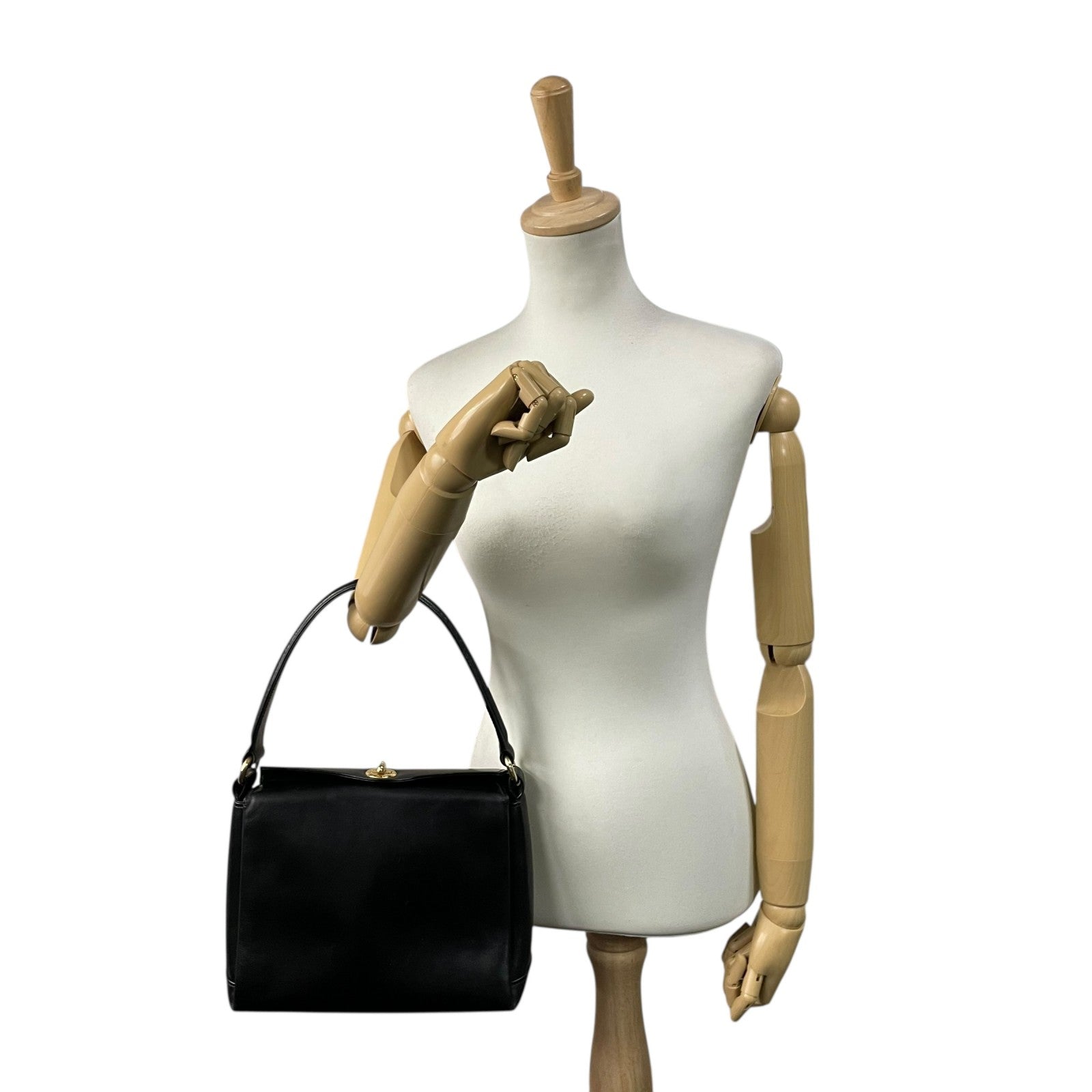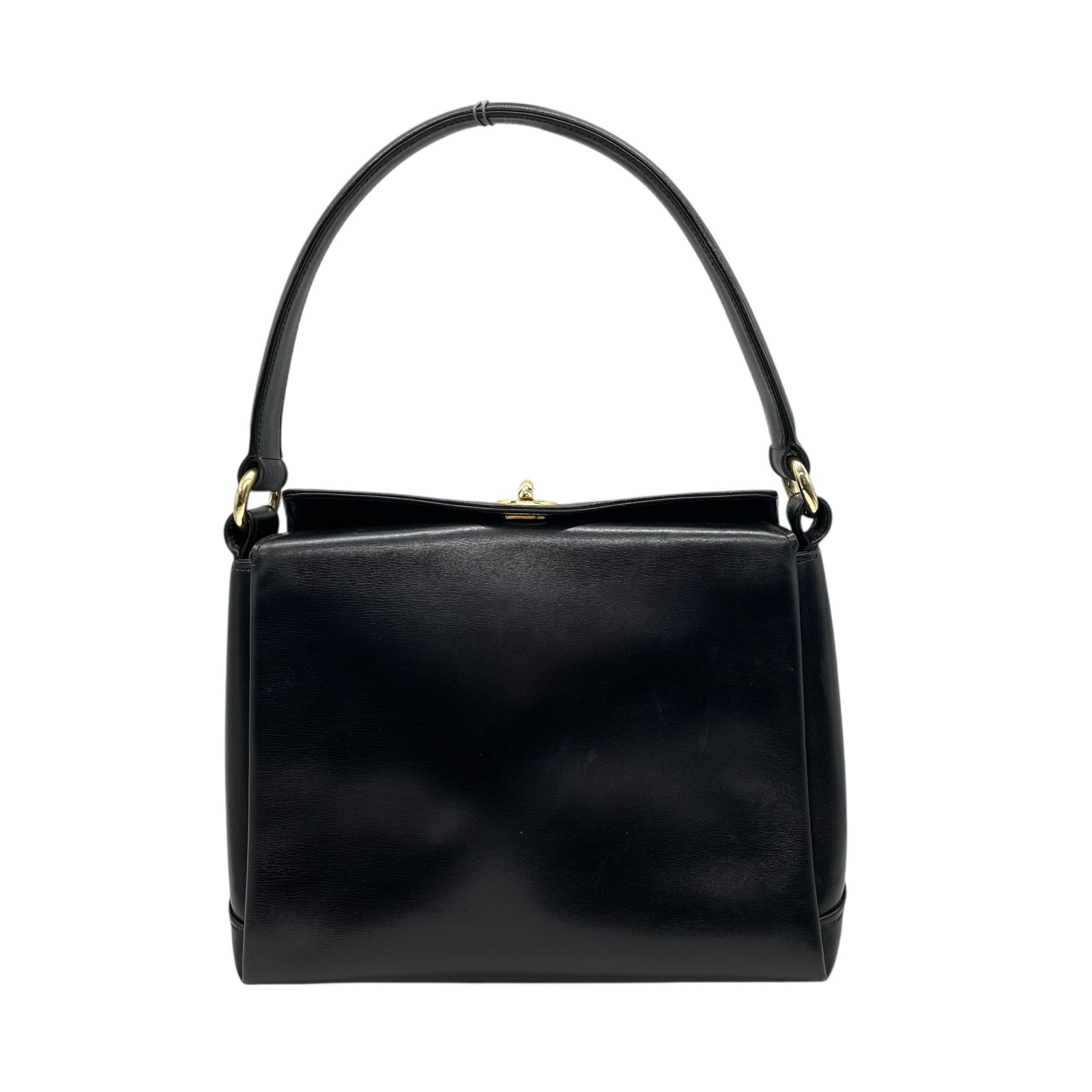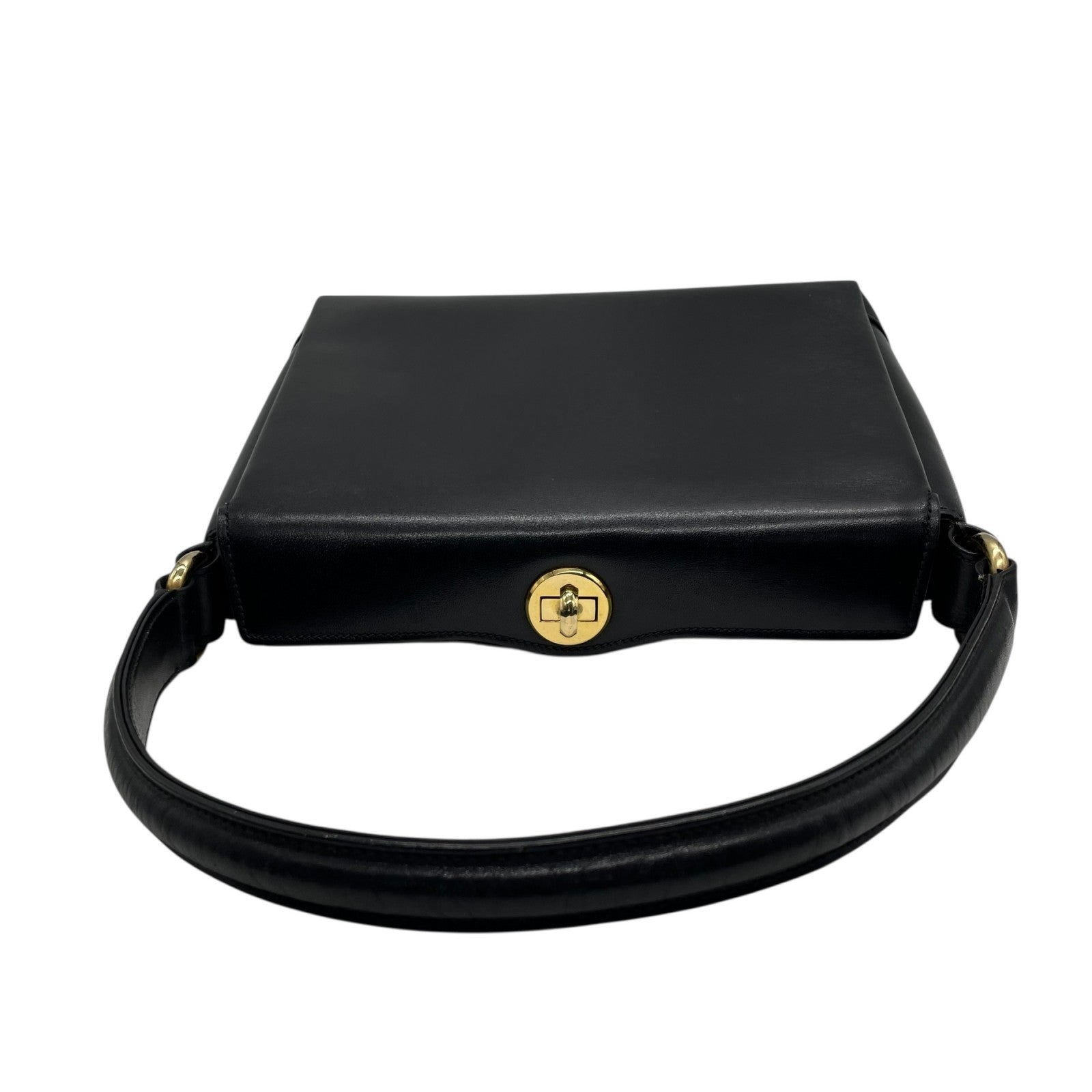 GUCCI オールドグッチ ヴィンテージ ターンロック ハンドバッグ レザー ブラック ゴールド金具 クラシック トップハンドル B5