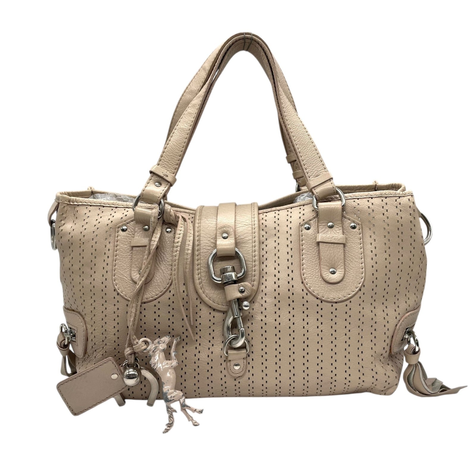 Chloé クロエ ケララ トートバッグ レザー Y2K vintage archive 00s パンチング ヌードカラー シルバーハードウェア 大容量 キャリーオール レディース U10