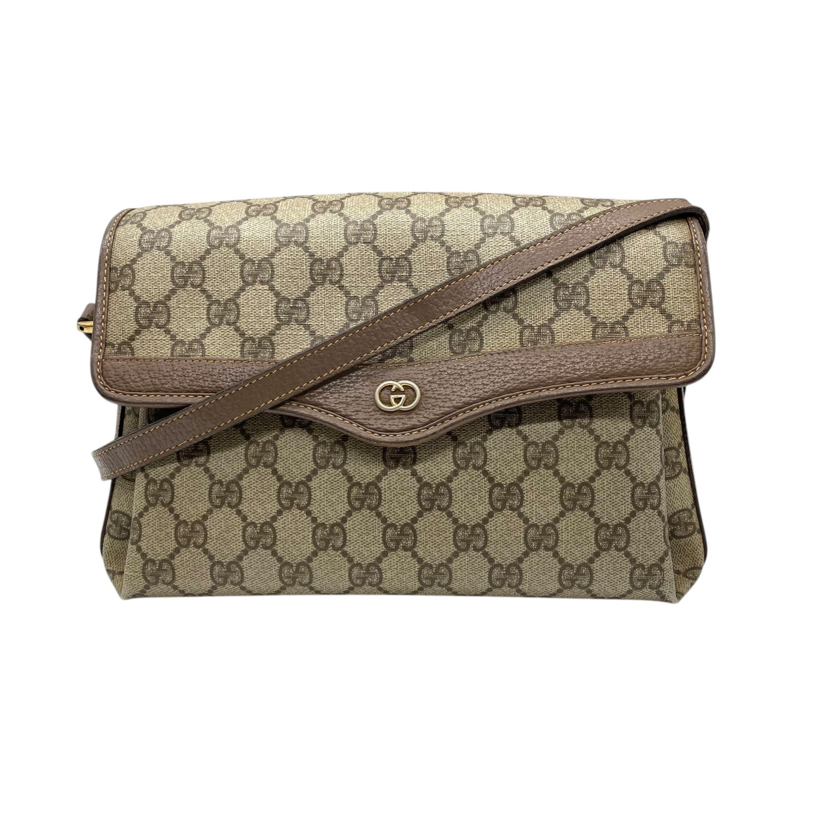 GUCCI オールドグッチ GGスプリーム ショルダーバッグ PVCキャンバス レザー ベージュ ブラウン ゴールド金具 ヴィンテージ S76