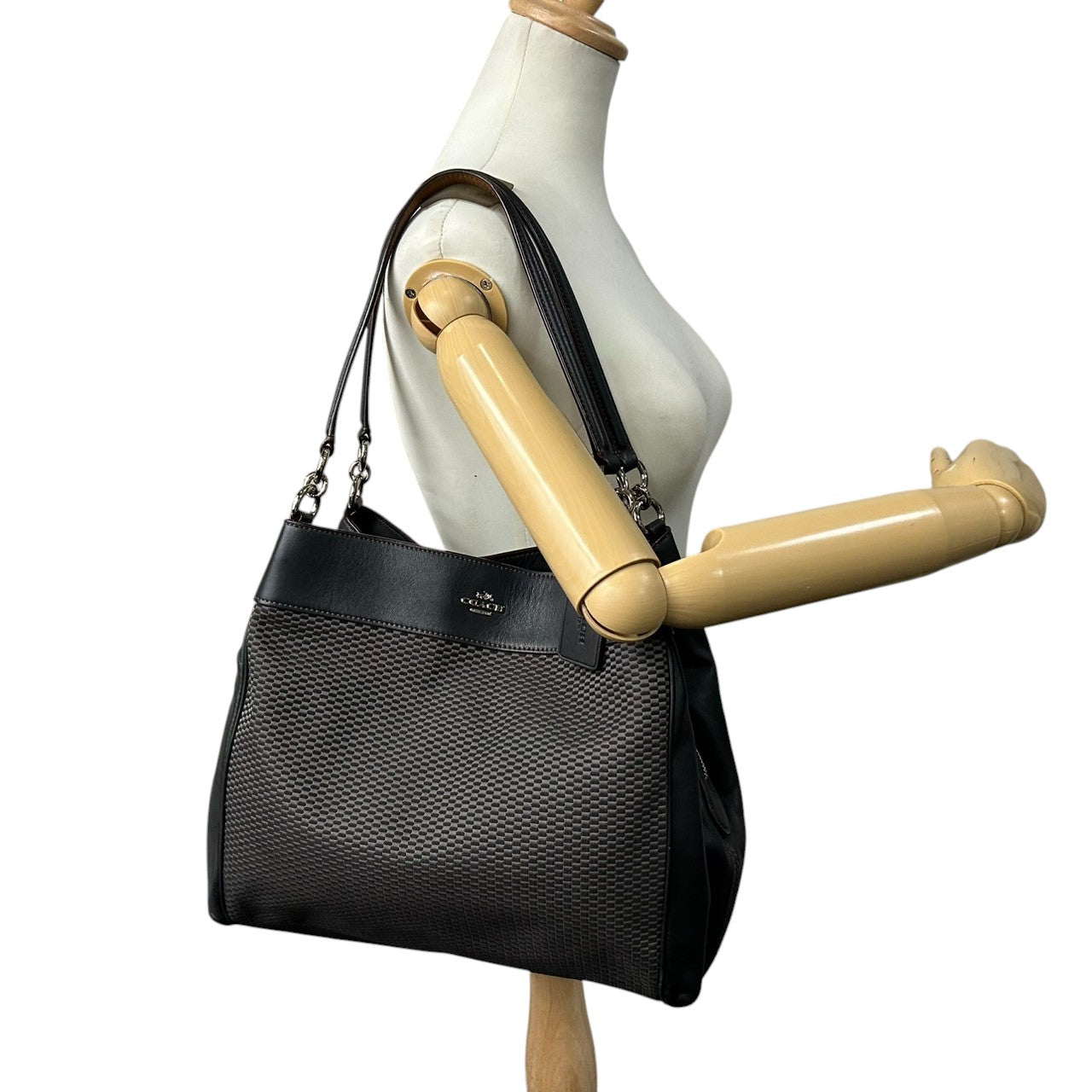 コーチ COACH レクシー ショルダーバッグ トートバッグ エクスプローデッド レップス ジャカード キャンバス レザー 本革 ブラック グレー チェーン F57540 ロゴチャーム レディース 肩掛け 通勤 多収納 エレガント 鞄 カバン s96
