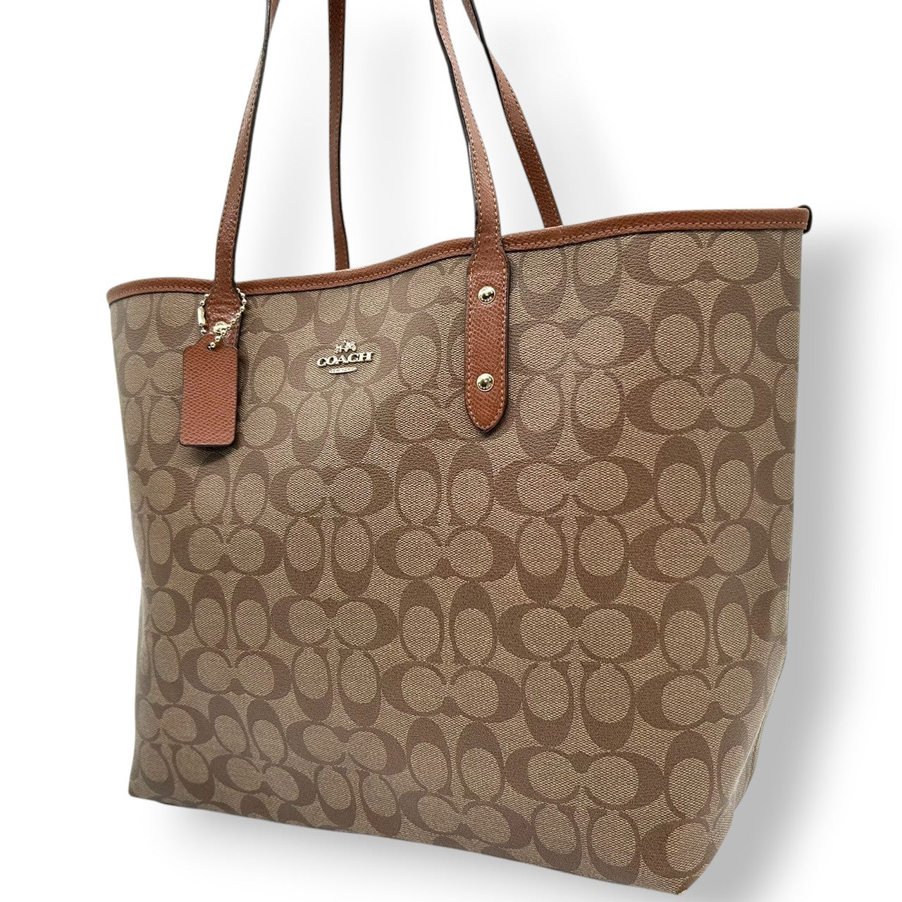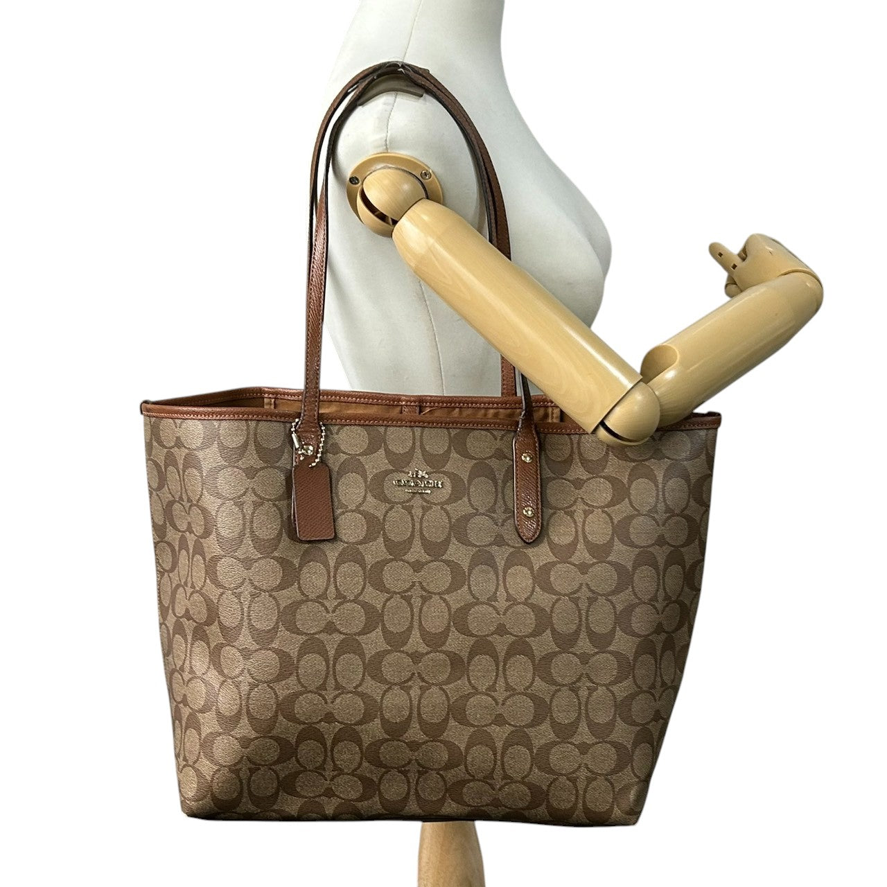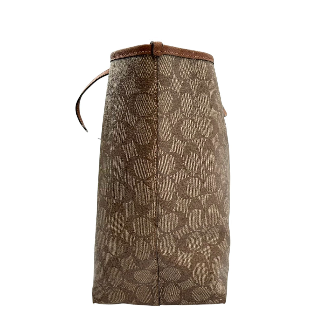 コーチ COACH シグネチャー シティ トートバッグ ハンドバッグ F36126 PVC レザー 本革 ブラウン カーキ サドル 茶色 A4収納可 大容量 肩掛け 軽量 レディース マザーズバッグ 通勤 通学 ビジネス ゴールド金具 エレガント 定番 s84