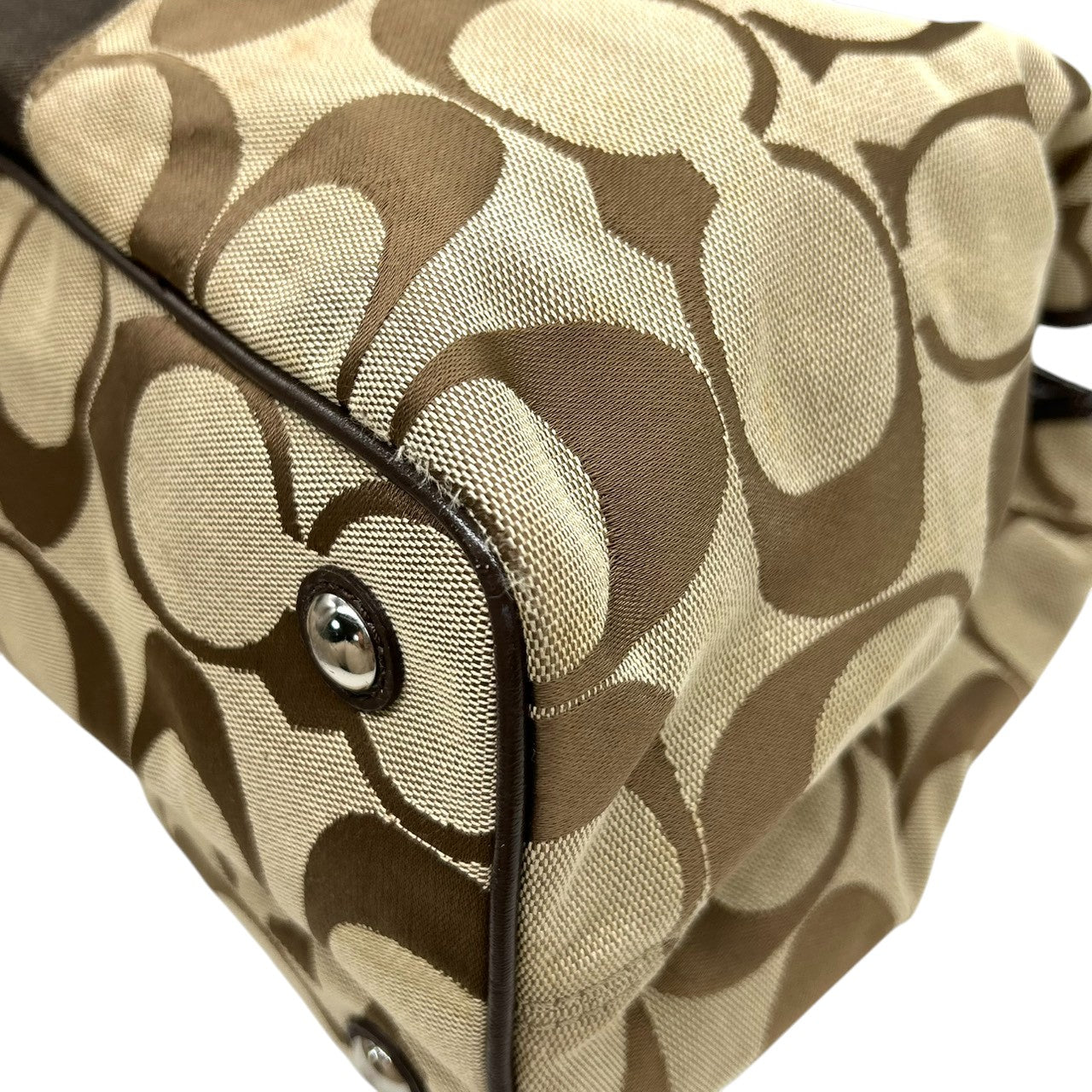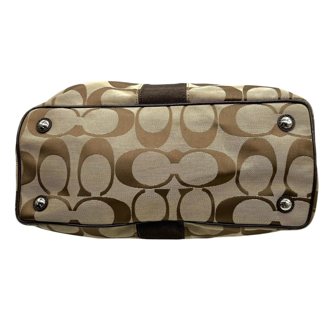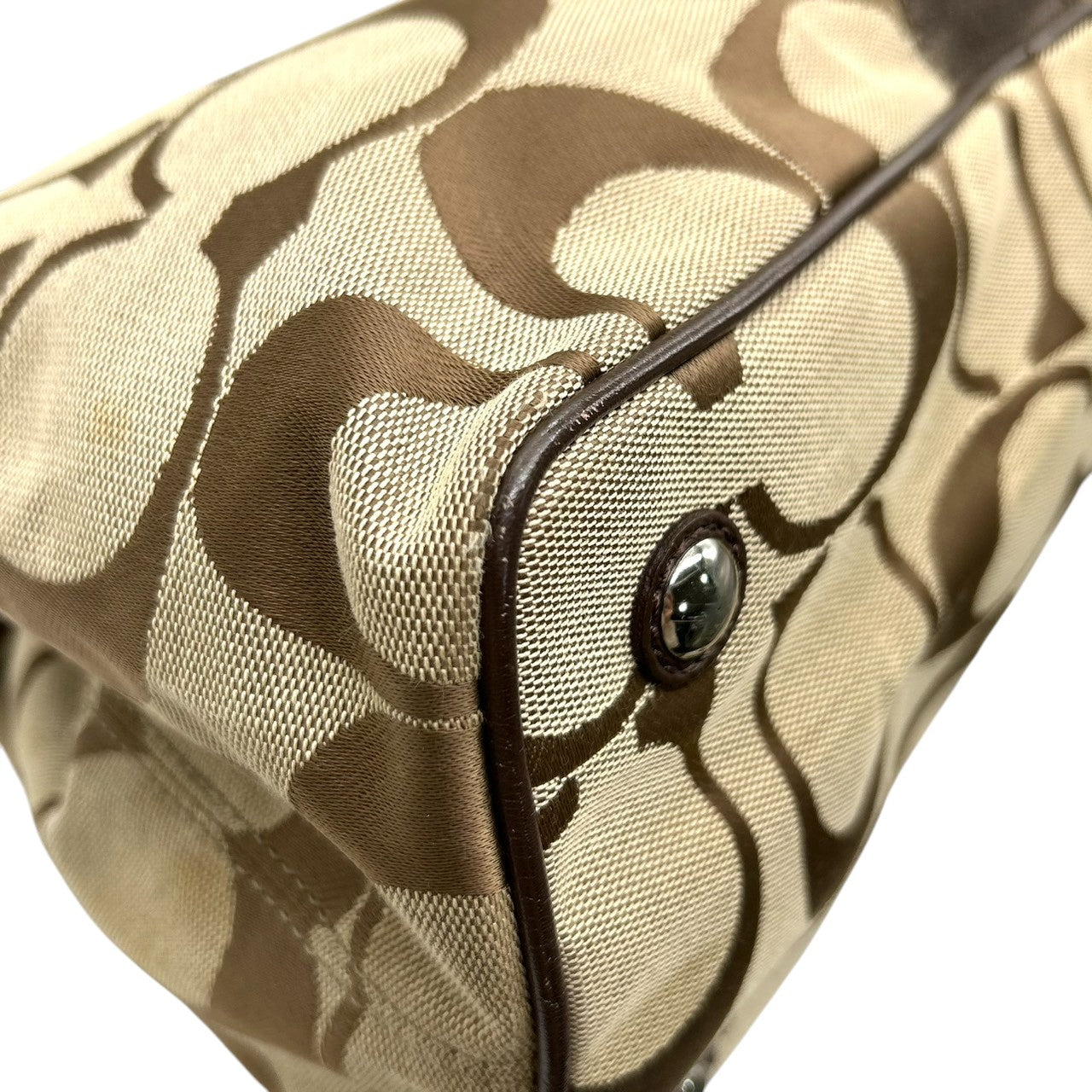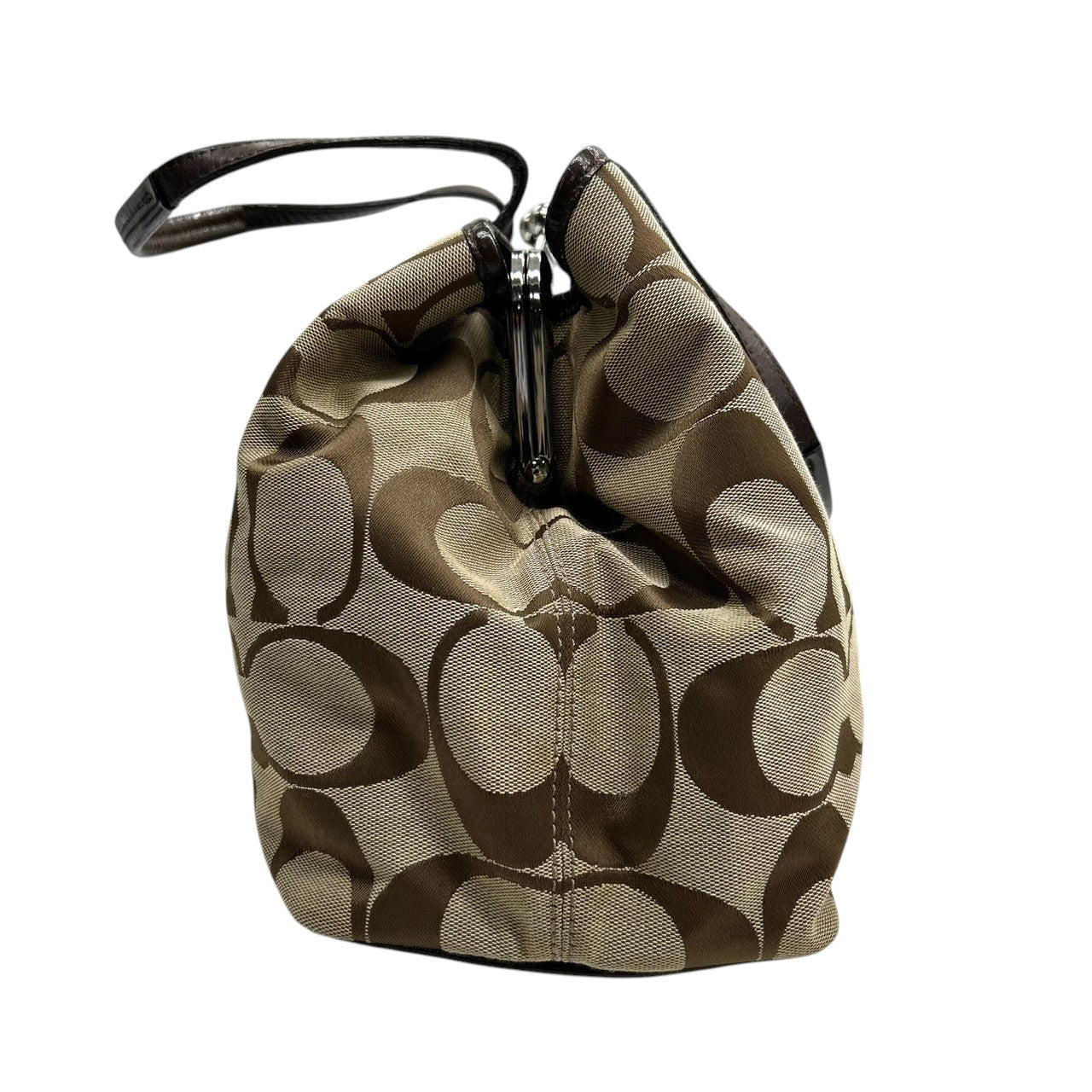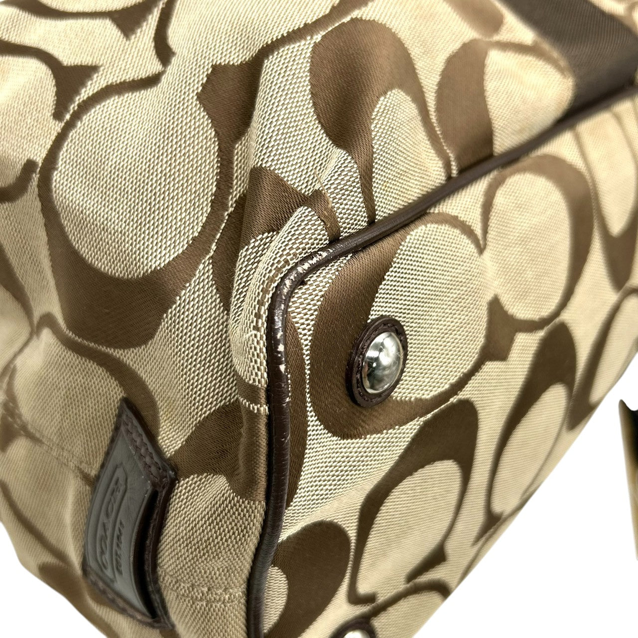 コーチ COACH パーカー シグネチャー トートバッグ ハンドバッグ キャリーオール F13533 キャンバス レザー 本革 ベージュ ブラウン 茶色 ガマ口 キスロック 3室構造 肩掛け ワンショルダー レディース 鞄 カバン 通勤 カジュアル s81